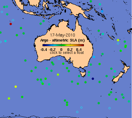 Click on an Argo float on the map above or select one by [WMO number] to see T & S profiles.