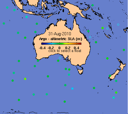 Click on an Argo float on the map above or select one by [WMO number] to see T & S profiles.