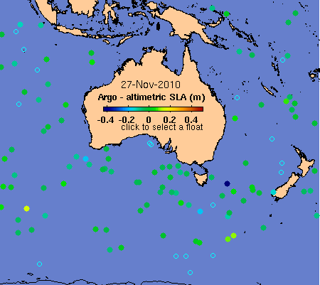Click on an Argo float on the map above or select one by [WMO number] to see T & S profiles.