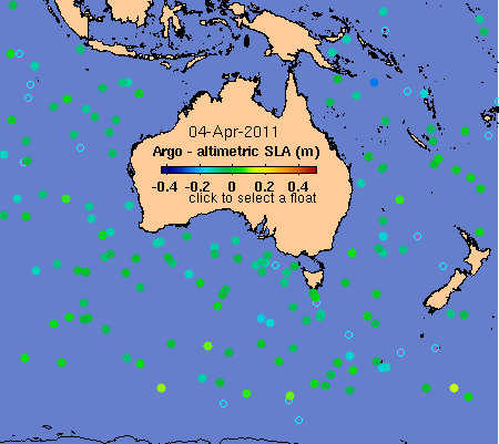 Click on an Argo float on the map above or select one by [WMO number] to see T & S profiles.