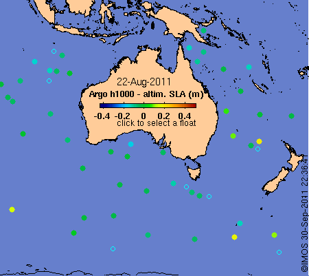Click on an Argo float on the map above or select one by [WMO number] to see T & S profiles.