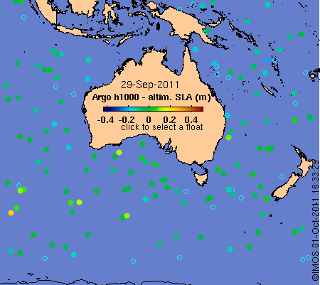 Click on an Argo float on the map above or select one by [WMO number] to see T & S profiles.