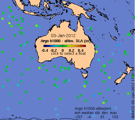 Click on an Argo float on the map above or select one by [WMO number] to see T & S profiles.
