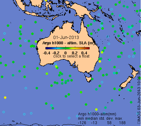 Click on an Argo float on the map above or select one by [WMO number] to see T & S profiles.