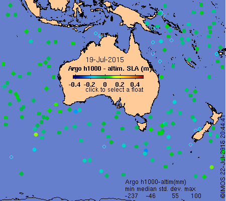 Click on an Argo float on the map above or select one by [WMO number] to see T & S profiles.