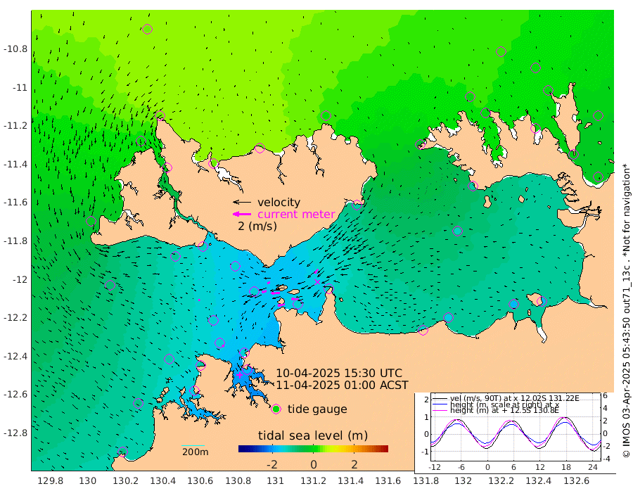 82cm/s -101T +4cm/s rms + 6cm/s 51T. Darwin_C1 52m 81cm/s -91T +4cm/s rms + 7cm/s -161T. Darwin_CW1 22m 51cm/s -106T +4cm/s rms + 8cm/s 61T. Darwin_CW2 34m 62cm/s -138T +3cm/s rms + 9cm/s 98T. Darwin_CW3 22m 95cm/s -91T +5cm/s rms + 7cm/s 88T. Darwin_C3 56m 31cm/s -115T +2cm/s rms + 9cm/s -126T. Darwin_CTbW 22m 17cm/s 116T +1cm/s rms + 1cm/s -47T. DARBGF 30m 23cm/s 139T +4cm/s rms + 3cm/s 80T. NRSDAR 19m 40cm Goodrich Bank -100cm Point Jenny -98cm Native Point -122cm Fish Reef -119cm Tapa Bay -19cm Point Fawcett (Offshore) -153cm Burge Point -112cm Munkunuwa -88cm Beagle A -142cm Parsons Bank -146cm Fenton Patches -142cm Hancox Shoal Area -145cm Nightcliff -169cm Darwin -140cm Charles Point Patches -144cm Glyde Point -141cm Chambers Bay -153cm Point Stuart -133cm Cape Hotham -131cm Christine Reef -169cm West Alligator Head -179cm East Field Island -117cm Two Hills Bay -117cm Camp Point -124cm Medina Inlet South -9cm South Barlow Point 14cm St. Asaph Bay 41cm Cape Van Dieman 37cm Snake Bay 33cm Cache Point 13cm Point Jahleel (Off) -36cm Cape Don 8cm Port Essington 11cm Smith Point - West 13cm NW Peacock Island 28cm North Of Jones Shoal 9cm Peacock Island -2cm Point David 10cm D'urville Point -6cm Copeland Island -3cm One Tree Point