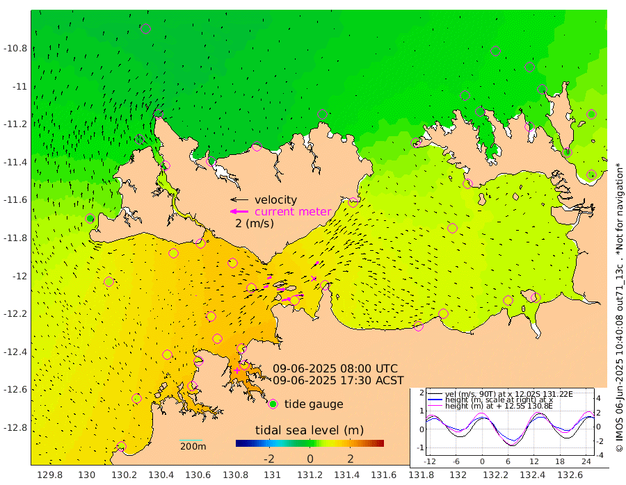 100cm/s 78T +4cm/s rms + 6cm/s 51T. Darwin_C1 52m 91cm/s 91T +4cm/s rms + 7cm/s -161T. Darwin_CW1 22m 54cm/s 73T +4cm/s rms + 8cm/s 61T. Darwin_CW2 34m 63cm/s 42T +3cm/s rms + 9cm/s 98T. Darwin_CW3 22m 94cm/s 89T +5cm/s rms + 7cm/s 88T. Darwin_C3 56m 49cm/s 66T +2cm/s rms + 9cm/s -126T. Darwin_CTbW 22m 5cm/s 31T +1cm/s rms + 1cm/s -47T. DARBGF 30m 6cm/s 14T +4cm/s rms + 3cm/s 80T. NRSDAR 19m -36cm Goodrich Bank 75cm Point Jenny 74cm Native Point 93cm Fish Reef 94cm Tapa Bay 15cm Point Fawcett (Offshore) 111cm Burge Point 87cm Munkunuwa 57cm Beagle A 116cm Parsons Bank 103cm Fenton Patches 112cm Hancox Shoal Area 118cm Nightcliff 136cm Darwin 113cm Charles Point Patches 107cm Glyde Point 90cm Chambers Bay 99cm Point Stuart 95cm Cape Hotham 78cm Christine Reef 105cm West Alligator Head 103cm East Field Island 81cm Two Hills Bay 81cm Camp Point 100cm Medina Inlet South 11cm South Barlow Point -14cm St. Asaph Bay -34cm Cape Van Dieman -23cm Snake Bay -30cm Cache Point -13cm Point Jahleel (Off) 35cm Cape Don 5cm Port Essington 0cm Smith Point - West 1cm NW Peacock Island -11cm North Of Jones Shoal -1cm Peacock Island 33cm Point David 7cm D'urville Point 36cm Copeland Island 31cm One Tree Point