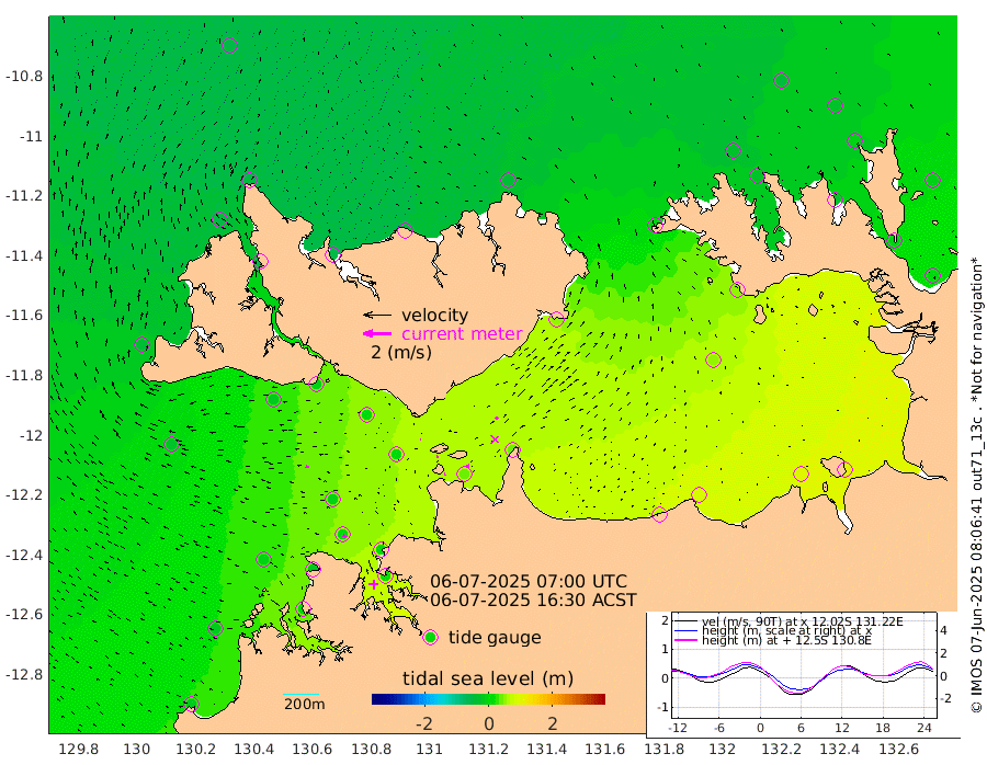 6cm/s 84T +4cm/s rms + 6cm/s 51T. Darwin_C1 52m 26cm/s 93T +4cm/s rms + 7cm/s -161T. Darwin_CW1 22m 1cm/s -72T +4cm/s rms + 8cm/s 61T. Darwin_CW2 34m 18cm/s 30T +3cm/s rms + 9cm/s 98T. Darwin_CW3 22m 17cm/s 94T +5cm/s rms + 7cm/s 88T. Darwin_C3 56m 3cm/s -126T +2cm/s rms + 9cm/s -126T. Darwin_CTbW 22m 25cm/s -85T +1cm/s rms + 1cm/s -47T. DARBGF 30m 27cm/s -56T +4cm/s rms + 3cm/s 80T. NRSDAR 19m -54cm Goodrich Bank -18cm Point Jenny -20cm Native Point -3cm Fish Reef -13cm Tapa Bay -44cm Point Fawcett (Offshore) 3cm Burge Point -19cm Munkunuwa -25cm Beagle A 4cm Parsons Bank -1cm Fenton Patches 6cm Hancox Shoal Area 2cm Nightcliff 17cm Darwin 1cm Charles Point Patches 37cm Glyde Point 61cm Chambers Bay 81cm Point Stuart 44cm Cape Hotham 50cm Christine Reef 91cm West Alligator Head 107cm East Field Island 51cm Two Hills Bay 47cm Camp Point -6cm Medina Inlet South -47cm South Barlow Point -56cm St. Asaph Bay -55cm Cape Van Dieman -51cm Snake Bay -49cm Cache Point -37cm Point Jahleel (Off) -2cm Cape Don -24cm Port Essington -30cm Smith Point - West -26cm NW Peacock Island -34cm North Of Jones Shoal -10cm Peacock Island -3cm Point David -25cm D'urville Point 1cm Copeland Island -3cm One Tree Point