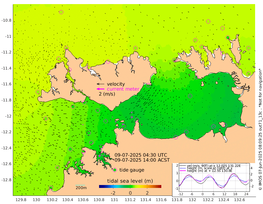 19cm/s -101T +4cm/s rms + 6cm/s 51T. Darwin_C1 52m 49cm/s -90T +4cm/s rms + 7cm/s -161T. Darwin_CW1 22m 8cm/s -109T +4cm/s rms + 8cm/s 61T. Darwin_CW2 34m 34cm/s -139T +3cm/s rms + 9cm/s 98T. Darwin_CW3 22m 29cm/s -92T +5cm/s rms + 7cm/s 88T. Darwin_C3 56m 8cm/s 54T +2cm/s rms + 9cm/s -126T. Darwin_CTbW 22m 22cm/s 98T +1cm/s rms + 1cm/s -47T. DARBGF 30m 22cm/s 132T +4cm/s rms + 3cm/s 80T. NRSDAR 19m 64cm Goodrich Bank 31cm Point Jenny 35cm Native Point 21cm Fish Reef 26cm Tapa Bay 52cm Point Fawcett (Offshore) 20cm Burge Point 20cm Munkunuwa 39cm Beagle A 18cm Parsons Bank 20cm Fenton Patches 12cm Hancox Shoal Area 15cm Nightcliff 10cm Darwin 21cm Charles Point Patches -3cm Glyde Point -33cm Chambers Bay -38cm Point Stuart -9cm Cape Hotham -23cm Christine Reef -50cm West Alligator Head -62cm East Field Island -12cm Two Hills Bay -7cm Camp Point 22cm Medina Inlet South 59cm South Barlow Point 58cm St. Asaph Bay 67cm Cape Van Dieman 72cm Snake Bay 63cm Cache Point 54cm Point Jahleel (Off) 36cm Cape Don 55cm Port Essington 56cm Smith Point - West 59cm NW Peacock Island 57cm North Of Jones Shoal 20cm Peacock Island 60cm Point David 60cm D'urville Point 55cm Copeland Island 56cm One Tree Point