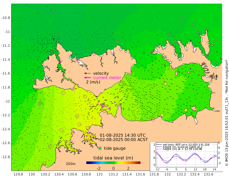 92cm/s 79T +4cm/s rms + 6cm/s 51T. Darwin_C1 52m 64cm/s 92T +4cm/s rms + 7cm/s -161T. Darwin_CW1 22m 58cm/s 71T +4cm/s rms + 8cm/s 61T. Darwin_CW2 34m 45cm/s 49T +3cm/s rms + 9cm/s 98T. Darwin_CW3 22m 95cm/s 89T +5cm/s rms + 7cm/s 88T. Darwin_C3 56m 50cm/s 66T +2cm/s rms + 9cm/s -126T. Darwin_CTbW 22m 5cm/s 39T +1cm/s rms + 1cm/s -47T. DARBGF 30m 9cm/s -22T +4cm/s rms + 3cm/s 80T. NRSDAR 19m -32cm Goodrich Bank 51cm Point Jenny 48cm Native Point 57cm Fish Reef 69cm Tapa Bay 13cm Point Fawcett (Offshore) 58cm Burge Point 60cm Munkunuwa 25cm Beagle A 75cm Parsons Bank 54cm Fenton Patches 84cm Hancox Shoal Area 83cm Nightcliff 85cm Darwin 70cm Charles Point Patches 71cm Glyde Point 84cm Chambers Bay 82cm Point Stuart 71cm Cape Hotham 67cm Christine Reef 92cm West Alligator Head 87cm East Field Island 67cm Two Hills Bay 52cm Camp Point 63cm Medina Inlet South -2cm South Barlow Point -12cm St. Asaph Bay -31cm Cape Van Dieman -27cm Snake Bay -25cm Cache Point -10cm Point Jahleel (Off) 20cm Cape Don -5cm Port Essington -2cm Smith Point - West -4cm NW Peacock Island -10cm North Of Jones Shoal -2cm Peacock Island 14cm Point David 0cm D'urville Point 18cm Copeland Island 12cm One Tree Point