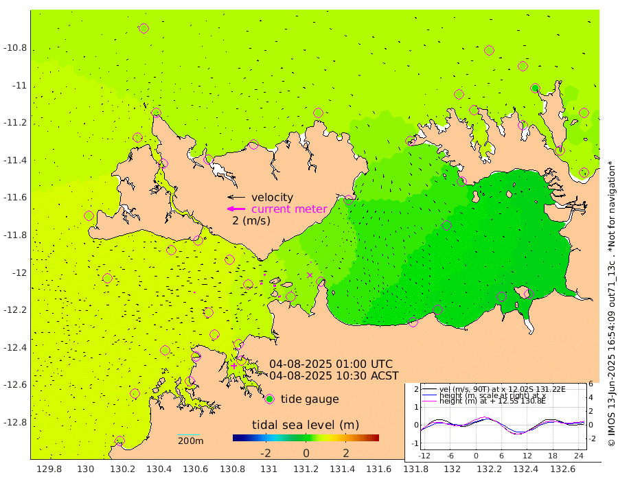28cm/s 78T +4cm/s rms + 6cm/s 51T. Darwin_C1 52m 6cm/s -78T +4cm/s rms + 7cm/s -161T. Darwin_CW1 22m 24cm/s 75T +4cm/s rms + 8cm/s 61T. Darwin_CW2 34m 8cm/s 58T +3cm/s rms + 9cm/s 98T. Darwin_CW3 22m 29cm/s 89T +5cm/s rms + 7cm/s 88T. Darwin_C3 56m 22cm/s 62T +2cm/s rms + 9cm/s -126T. Darwin_CTbW 22m 15cm/s 85T +1cm/s rms + 1cm/s -47T. DARBGF 30m 12cm/s 113T +4cm/s rms + 3cm/s 80T. NRSDAR 19m 54cm Goodrich Bank 66cm Point Jenny 69cm Native Point 63cm Fish Reef 72cm Tapa Bay 60cm Point Fawcett (Offshore) 77cm Burge Point 69cm Munkunuwa 66cm Beagle A 77cm Parsons Bank 71cm Fenton Patches 70cm Hancox Shoal Area 74cm Nightcliff 79cm Darwin 78cm Charles Point Patches 46cm Glyde Point 16cm Chambers Bay 6cm Point Stuart 35cm Cape Hotham 20cm Christine Reef 1cm West Alligator Head -12cm East Field Island 25cm Two Hills Bay 29cm Camp Point 73cm Medina Inlet South 69cm South Barlow Point 58cm St. Asaph Bay 55cm Cape Van Dieman 64cm Snake Bay 53cm Cache Point 51cm Point Jahleel (Off) 47cm Cape Don 52cm Port Essington 53cm Smith Point - West 54cm NW Peacock Island 51cm North Of Jones Shoal 18cm Peacock Island 56cm Point David 55cm D'urville Point 53cm Copeland Island 55cm One Tree Point