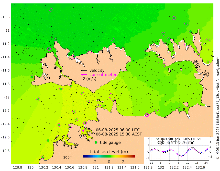 57cm/s 77T +4cm/s rms + 6cm/s 51T. Darwin_C1 52m 27cm/s 80T +4cm/s rms + 7cm/s -161T. Darwin_CW1 22m 9cm/s 79T +4cm/s rms + 8cm/s 61T. Darwin_CW2 34m 28cm/s 45T +3cm/s rms + 9cm/s 98T. Darwin_CW3 22m 5cm/s 94T +5cm/s rms + 7cm/s 88T. Darwin_C3 56m 38cm/s 64T +2cm/s rms + 9cm/s -126T. Darwin_CTbW 22m 6cm/s 92T +1cm/s rms + 1cm/s -47T. DARBGF 30m 7cm/s 104T +4cm/s rms + 3cm/s 80T. NRSDAR 19m -13cm Goodrich Bank 31cm Point Jenny 31cm Native Point 32cm Fish Reef 39cm Tapa Bay 7cm Point Fawcett (Offshore) 37cm Burge Point 26cm Munkunuwa 23cm Beagle A 43cm Parsons Bank 38cm Fenton Patches 46cm Hancox Shoal Area 52cm Nightcliff 47cm Darwin 37cm Charles Point Patches 41cm Glyde Point 36cm Chambers Bay 39cm Point Stuart 40cm Cape Hotham 31cm Christine Reef 39cm West Alligator Head 36cm East Field Island 35cm Two Hills Bay 35cm Camp Point 33cm Medina Inlet South 5cm South Barlow Point -6cm St. Asaph Bay -10cm Cape Van Dieman -2cm Snake Bay -8cm Cache Point 0cm Point Jahleel (Off) 21cm Cape Don 10cm Port Essington 10cm Smith Point - West 13cm NW Peacock Island 5cm North Of Jones Shoal 4cm Peacock Island 40cm Point David 18cm D'urville Point 42cm Copeland Island 34cm One Tree Point