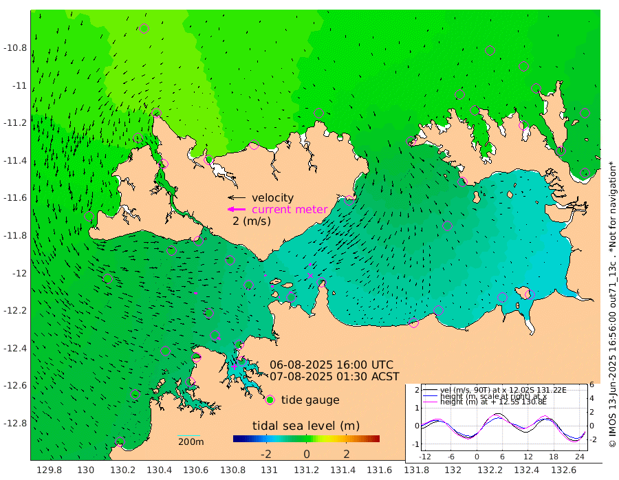 13cm/s 74T +4cm/s rms + 6cm/s 51T. Darwin_C1 52m 30cm/s -97T +4cm/s rms + 7cm/s -161T. Darwin_CW1 22m 1cm/s 16T +4cm/s rms + 8cm/s 61T. Darwin_CW2 34m 30cm/s -152T +3cm/s rms + 9cm/s 98T. Darwin_CW3 22m 29cm/s -88T +5cm/s rms + 7cm/s 88T. Darwin_C3 56m 25cm/s 63T +2cm/s rms + 9cm/s -126T. Darwin_CTbW 22m 37cm/s 97T +1cm/s rms + 1cm/s -47T. DARBGF 30m 41cm/s 126T +4cm/s rms + 3cm/s 80T. NRSDAR 19m 27cm Goodrich Bank -3cm Point Jenny -3cm Native Point -21cm Fish Reef -22cm Tapa Bay 18cm Point Fawcett (Offshore) -34cm Burge Point -6cm Munkunuwa 3cm Beagle A -34cm Parsons Bank -27cm Fenton Patches -42cm Hancox Shoal Area -33cm Nightcliff -61cm Darwin -46cm Charles Point Patches -73cm Glyde Point -101cm Chambers Bay -117cm Point Stuart -82cm Cape Hotham -78cm Christine Reef -128cm West Alligator Head -149cm East Field Island -82cm Two Hills Bay -87cm Camp Point -26cm Medina Inlet South 24cm South Barlow Point 31cm St. Asaph Bay 29cm Cape Van Dieman 22cm Snake Bay 24cm Cache Point 11cm Point Jahleel (Off) -19cm Cape Don 2cm Port Essington 13cm Smith Point - West 6cm NW Peacock Island 11cm North Of Jones Shoal 2cm Peacock Island -22cm Point David 7cm D'urville Point -23cm Copeland Island -20cm One Tree Point