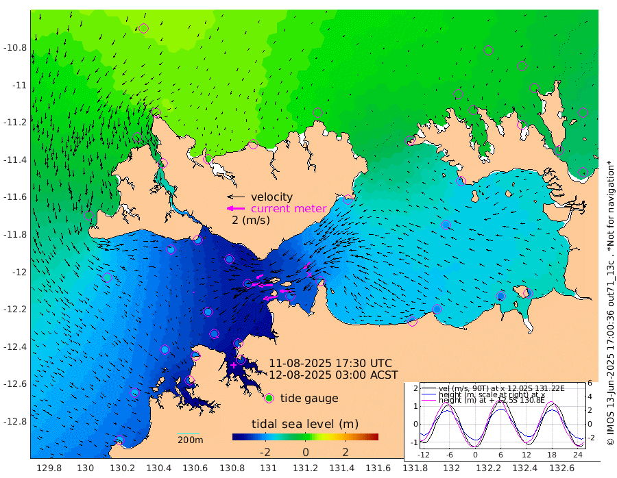 165cm/s -101T +4cm/s rms + 6cm/s 51T. Darwin_C1 52m 129cm/s -91T +4cm/s rms + 7cm/s -161T. Darwin_CW1 22m 92cm/s -106T +4cm/s rms + 8cm/s 61T. Darwin_CW2 34m 101cm/s -136T +3cm/s rms + 9cm/s 98T. Darwin_CW3 22m 161cm/s -90T +5cm/s rms + 7cm/s 88T. Darwin_C3 56m 85cm/s -116T +2cm/s rms + 9cm/s -126T. Darwin_CTbW 22m 13cm/s 141T +1cm/s rms + 1cm/s -47T. DARBGF 30m 23cm/s 154T +4cm/s rms + 3cm/s 80T. NRSDAR 19m 39cm Goodrich Bank -172cm Point Jenny -170cm Native Point -180cm Fish Reef -209cm Tapa Bay -49cm Point Fawcett (Offshore) -231cm Burge Point -183cm Munkunuwa -127cm Beagle A -233cm Parsons Bank -213cm Fenton Patches -242cm Hancox Shoal Area -243cm Nightcliff -270cm Darwin -234cm Charles Point Patches -216cm Glyde Point -214cm Chambers Bay -207cm Point Stuart -192cm Cape Hotham -194cm Christine Reef -224cm West Alligator Head -224cm East Field Island -169cm Two Hills Bay -177cm Camp Point -202cm Medina Inlet South -35cm South Barlow Point 1cm St. Asaph Bay 38cm Cape Van Dieman 28cm Snake Bay 31cm Cache Point 1cm Point Jahleel (Off) -76cm Cape Don -17cm Port Essington -12cm Smith Point - West -13cm NW Peacock Island 12cm North Of Jones Shoal 1cm Peacock Island -55cm Point David -20cm D'urville Point -59cm Copeland Island -49cm One Tree Point