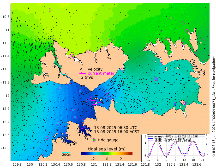 167cm/s -101T +4cm/s rms + 6cm/s 51T. Darwin_C1 52m 128cm/s -91T +4cm/s rms + 7cm/s -161T. Darwin_CW1 22m 84cm/s -106T +4cm/s rms + 8cm/s 61T. Darwin_CW2 34m 98cm/s -137T +3cm/s rms + 9cm/s 98T. Darwin_CW3 22m 150cm/s -91T +5cm/s rms + 7cm/s 88T. Darwin_C3 56m 89cm/s -116T +2cm/s rms + 9cm/s -126T. Darwin_CTbW 22m 12cm/s 133T +1cm/s rms + 1cm/s -47T. DARBGF 30m 22cm/s 153T +4cm/s rms + 3cm/s 80T. NRSDAR 19m 54cm Goodrich Bank -145cm Point Jenny -143cm Native Point -160cm Fish Reef -180cm Tapa Bay -28cm Point Fawcett (Offshore) -202cm Burge Point -160cm Munkunuwa -115cm Beagle A -208cm Parsons Bank -197cm Fenton Patches -217cm Hancox Shoal Area -223cm Nightcliff -236cm Darwin -192cm Charles Point Patches -198cm Glyde Point -202cm Chambers Bay -203cm Point Stuart -185cm Cape Hotham -184cm Christine Reef -224cm West Alligator Head -227cm East Field Island -164cm Two Hills Bay -157cm Camp Point -172cm Medina Inlet South -17cm South Barlow Point 17cm St. Asaph Bay 53cm Cape Van Dieman 42cm Snake Bay 44cm Cache Point 10cm Point Jahleel (Off) -56cm Cape Don 3cm Port Essington 0cm Smith Point - West 0cm NW Peacock Island 27cm North Of Jones Shoal 7cm Peacock Island -36cm Point David -7cm D'urville Point -43cm Copeland Island -29cm One Tree Point
