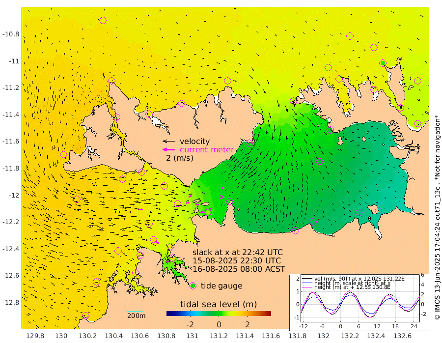 74cm/s 79T +4cm/s rms + 6cm/s 51T. Darwin_C1 52m 49cm/s 85T +4cm/s rms + 7cm/s -161T. Darwin_CW1 22m 49cm/s 75T +4cm/s rms + 8cm/s 61T. Darwin_CW2 34m 9cm/s 82T +3cm/s rms + 9cm/s 98T. Darwin_CW3 22m 51cm/s 87T +5cm/s rms + 7cm/s 88T. Darwin_C3 56m 52cm/s 62T +2cm/s rms + 9cm/s -126T. Darwin_CTbW 22m 64cm/s 92T +1cm/s rms + 1cm/s -47T. DARBGF 30m 64cm/s 122T +4cm/s rms + 3cm/s 80T. NRSDAR 19m 103cm Goodrich Bank 129cm Point Jenny 133cm Native Point 140cm Fish Reef 134cm Tapa Bay 137cm Point Fawcett (Offshore) 134cm Burge Point 143cm Munkunuwa 141cm Beagle A 128cm Parsons Bank 132cm Fenton Patches 105cm Hancox Shoal Area 115cm Nightcliff 130cm Darwin 143cm Charles Point Patches 47cm Glyde Point -49cm Chambers Bay -67cm Point Stuart 15cm Cape Hotham -45cm Christine Reef -87cm West Alligator Head -124cm East Field Island -15cm Two Hills Bay -11cm Camp Point 142cm Medina Inlet South 142cm South Barlow Point 127cm St. Asaph Bay 109cm Cape Van Dieman 116cm Snake Bay 101cm Cache Point 89cm Point Jahleel (Off) 64cm Cape Don 90cm Port Essington 91cm Smith Point - West 86cm NW Peacock Island 87cm North Of Jones Shoal 30cm Peacock Island 68cm Point David 90cm D'urville Point 62cm Copeland Island 70cm One Tree Point
