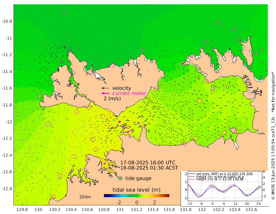 130cm/s 78T +4cm/s rms + 6cm/s 51T. Darwin_C1 52m 93cm/s 91T +4cm/s rms + 7cm/s -161T. Darwin_CW1 22m 57cm/s 72T +4cm/s rms + 8cm/s 61T. Darwin_CW2 34m 62cm/s 50T +3cm/s rms + 9cm/s 98T. Darwin_CW3 22m 89cm/s 89T +5cm/s rms + 7cm/s 88T. Darwin_C3 56m 77cm/s 65T +2cm/s rms + 9cm/s -126T. Darwin_CTbW 22m 9cm/s 58T +1cm/s rms + 1cm/s -47T. DARBGF 30m 6cm/s 3T +4cm/s rms + 3cm/s 80T. NRSDAR 19m -16cm Goodrich Bank 100cm Point Jenny 95cm Native Point 99cm Fish Reef 106cm Tapa Bay 44cm Point Fawcett (Offshore) 112cm Burge Point 94cm Munkunuwa 77cm Beagle A 109cm Parsons Bank 106cm Fenton Patches 114cm Hancox Shoal Area 121cm Nightcliff 115cm Darwin 99cm Charles Point Patches 103cm Glyde Point 113cm Chambers Bay 114cm Point Stuart 99cm Cape Hotham 112cm Christine Reef 128cm West Alligator Head 125cm East Field Island 95cm Two Hills Bay 81cm Camp Point 97cm Medina Inlet South 20cm South Barlow Point 12cm St. Asaph Bay -14cm Cape Van Dieman -17cm Snake Bay -4cm Cache Point 8cm Point Jahleel (Off) 42cm Cape Don 6cm Port Essington 12cm Smith Point - West 7cm NW Peacock Island -1cm North Of Jones Shoal 0cm Peacock Island 13cm Point David 9cm D'urville Point 16cm Copeland Island 14cm One Tree Point