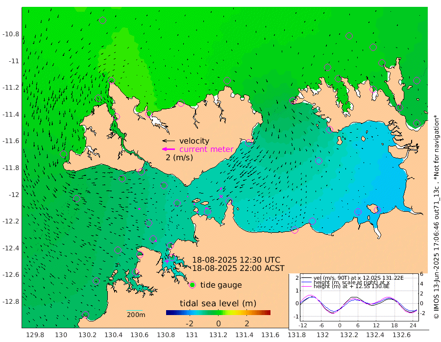 26cm/s -102T +4cm/s rms + 6cm/s 51T. Darwin_C1 52m 44cm/s -92T +4cm/s rms + 7cm/s -161T. Darwin_CW1 22m 4cm/s 57T +4cm/s rms + 8cm/s 61T. Darwin_CW2 34m 41cm/s -148T +3cm/s rms + 9cm/s 98T. Darwin_CW3 22m 17cm/s -80T +5cm/s rms + 7cm/s 88T. Darwin_C3 56m 11cm/s -114T +2cm/s rms + 9cm/s -126T. Darwin_CTbW 22m 31cm/s 97T +1cm/s rms + 1cm/s -47T. DARBGF 30m 35cm/s 123T +4cm/s rms + 3cm/s 80T. NRSDAR 19m 13cm Goodrich Bank -53cm Point Jenny -51cm Native Point -54cm Fish Reef -59cm Tapa Bay -5cm Point Fawcett (Offshore) -77cm Burge Point -23cm Munkunuwa -50cm Beagle A -60cm Parsons Bank -79cm Fenton Patches -76cm Hancox Shoal Area -77cm Nightcliff -81cm Darwin -68cm Charles Point Patches -107cm Glyde Point -146cm Chambers Bay -156cm Point Stuart -112cm Cape Hotham -138cm Christine Reef -170cm West Alligator Head -196cm East Field Island -115cm Two Hills Bay -122cm Camp Point -47cm Medina Inlet South 9cm South Barlow Point 13cm St. Asaph Bay 16cm Cape Van Dieman 16cm Snake Bay 3cm Cache Point -7cm Point Jahleel (Off) -44cm Cape Don -11cm Port Essington -8cm Smith Point - West -13cm NW Peacock Island 0cm North Of Jones Shoal -1cm Peacock Island -34cm Point David -13cm D'urville Point -37cm Copeland Island -31cm One Tree Point