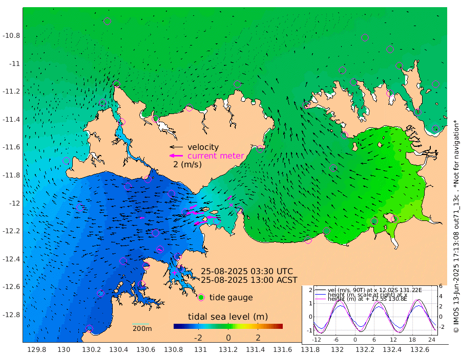 204cm/s -102T +4cm/s rms + 6cm/s 51T. Darwin_C1 52m 159cm/s -90T +4cm/s rms + 7cm/s -161T. Darwin_CW1 22m 118cm/s -107T +4cm/s rms + 8cm/s 61T. Darwin_CW2 34m 83cm/s -133T +3cm/s rms + 9cm/s 98T. Darwin_CW3 22m 160cm/s -91T +5cm/s rms + 7cm/s 88T. Darwin_C3 56m 114cm/s -115T +2cm/s rms + 9cm/s -126T. Darwin_CTbW 22m 69cm/s -92T +1cm/s rms + 1cm/s -47T. DARBGF 30m 61cm/s -65T +4cm/s rms + 3cm/s 80T. NRSDAR 19m -22cm Goodrich Bank -215cm Point Jenny -213cm Native Point -238cm Fish Reef -238cm Tapa Bay -135cm Point Fawcett (Offshore) -252cm Burge Point -239cm Munkunuwa -197cm Beagle A -250cm Parsons Bank -246cm Fenton Patches -234cm Hancox Shoal Area -254cm Nightcliff -266cm Darwin -250cm Charles Point Patches -162cm Glyde Point -78cm Chambers Bay -62cm Point Stuart -125cm Cape Hotham -68cm Christine Reef -58cm West Alligator Head -22cm East Field Island -80cm Two Hills Bay -75cm Camp Point -241cm Medina Inlet South -120cm South Barlow Point -84cm St. Asaph Bay -30cm Cape Van Dieman -38cm Snake Bay -32cm Cache Point -44cm Point Jahleel (Off) -78cm Cape Don -55cm Port Essington -58cm Smith Point - West -50cm NW Peacock Island -38cm North Of Jones Shoal -16cm Peacock Island -58cm Point David -60cm D'urville Point -61cm Copeland Island -59cm One Tree Point