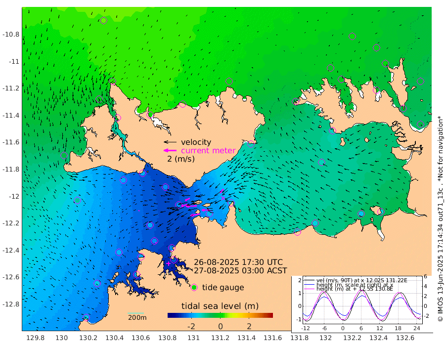 159cm/s -101T +4cm/s rms + 6cm/s 51T. Darwin_C1 52m 130cm/s -91T +4cm/s rms + 7cm/s -161T. Darwin_CW1 22m 99cm/s -106T +4cm/s rms + 8cm/s 61T. Darwin_CW2 34m 84cm/s -135T +3cm/s rms + 9cm/s 98T. Darwin_CW3 22m 171cm/s -91T +5cm/s rms + 7cm/s 88T. Darwin_C3 56m 81cm/s -116T +2cm/s rms + 9cm/s -126T. Darwin_CTbW 22m 14cm/s -125T +1cm/s rms + 1cm/s -47T. DARBGF 30m 11cm/s -140T +4cm/s rms + 3cm/s 80T. NRSDAR 19m 36cm Goodrich Bank -150cm Point Jenny -149cm Native Point -171cm Fish Reef -187cm Tapa Bay -55cm Point Fawcett (Offshore) -199cm Burge Point -181cm Munkunuwa -109cm Beagle A -212cm Parsons Bank -181cm Fenton Patches -208cm Hancox Shoal Area -207cm Nightcliff -241cm Darwin -208cm Charles Point Patches -177cm Glyde Point -153cm Chambers Bay -153cm Point Stuart -155cm Cape Hotham -127cm Christine Reef -166cm West Alligator Head -153cm East Field Island -130cm Two Hills Bay -124cm Camp Point -189cm Medina Inlet South -40cm South Barlow Point -5cm St. Asaph Bay 32cm Cape Van Dieman 21cm Snake Bay 29cm Cache Point 3cm Point Jahleel (Off) -59cm Cape Don -14cm Port Essington -9cm Smith Point - West -7cm NW Peacock Island 13cm North Of Jones Shoal 2cm Peacock Island -43cm Point David -14cm D'urville Point -46cm Copeland Island -39cm One Tree Point