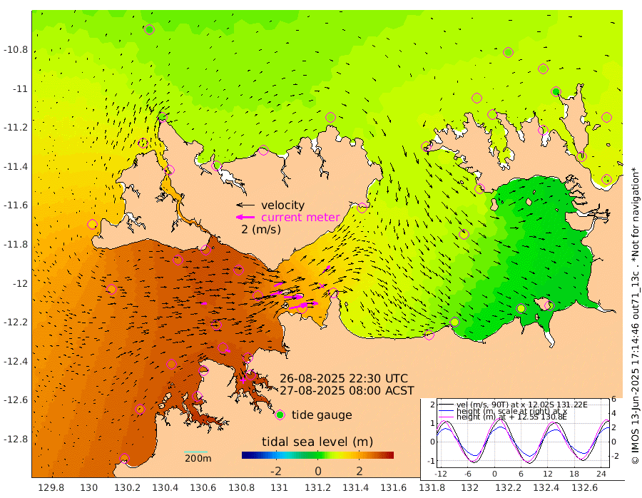 205cm/s 78T +4cm/s rms + 6cm/s 51T. Darwin_C1 52m 160cm/s 91T +4cm/s rms + 7cm/s -161T. Darwin_CW1 22m 130cm/s 74T +4cm/s rms + 8cm/s 61T. Darwin_CW2 34m 110cm/s 45T +3cm/s rms + 9cm/s 98T. Darwin_CW3 22m 200cm/s 89T +5cm/s rms + 7cm/s 88T. Darwin_C3 56m 102cm/s 65T +2cm/s rms + 9cm/s -126T. Darwin_CTbW 22m 58cm/s 84T +1cm/s rms + 1cm/s -47T. DARBGF 30m 54cm/s 110T +4cm/s rms + 3cm/s 80T. NRSDAR 19m 33cm Goodrich Bank 229cm Point Jenny 229cm Native Point 250cm Fish Reef 256cm Tapa Bay 140cm Point Fawcett (Offshore) 274cm Burge Point 254cm Munkunuwa 209cm Beagle A 270cm Parsons Bank 265cm Fenton Patches 254cm Hancox Shoal Area 275cm Nightcliff 296cm Darwin 275cm Charles Point Patches 188cm Glyde Point 104cm Chambers Bay 85cm Point Stuart 142cm Cape Hotham 93cm Christine Reef 84cm West Alligator Head 51cm East Field Island 100cm Two Hills Bay 102cm Camp Point 263cm Medina Inlet South 132cm South Barlow Point 91cm St. Asaph Bay 40cm Cape Van Dieman 52cm Snake Bay 39cm Cache Point 53cm Point Jahleel (Off) 91cm Cape Don 63cm Port Essington 64cm Smith Point - West 56cm NW Peacock Island 43cm North Of Jones Shoal 17cm Peacock Island 63cm Point David 65cm D'urville Point 63cm Copeland Island 66cm One Tree Point