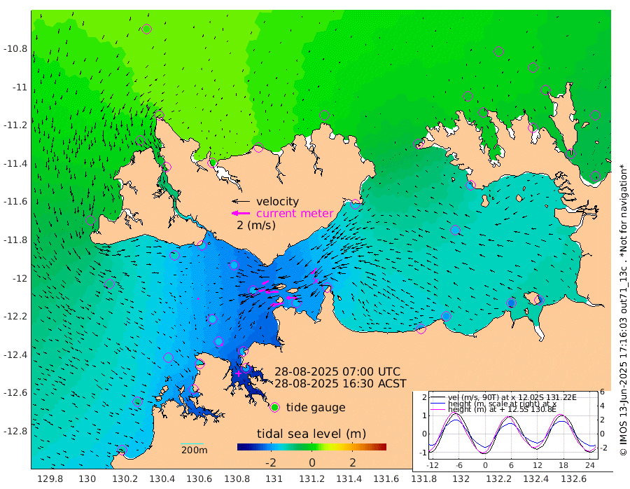 146cm/s -100T +4cm/s rms + 6cm/s 51T. Darwin_C1 52m 124cm/s -92T +4cm/s rms + 7cm/s -161T. Darwin_CW1 22m 70cm/s -105T +4cm/s rms + 8cm/s 61T. Darwin_CW2 34m 87cm/s -137T +3cm/s rms + 9cm/s 98T. Darwin_CW3 22m 143cm/s -90T +5cm/s rms + 7cm/s 88T. Darwin_C3 56m 76cm/s -115T +2cm/s rms + 9cm/s -126T. Darwin_CTbW 22m 16cm/s 123T +1cm/s rms + 1cm/s -47T. DARBGF 30m 27cm/s 144T +4cm/s rms + 3cm/s 80T. NRSDAR 19m 33cm Goodrich Bank -116cm Point Jenny -111cm Native Point -140cm Fish Reef -142cm Tapa Bay -39cm Point Fawcett (Offshore) -164cm Burge Point -126cm Munkunuwa -90cm Beagle A -171cm Parsons Bank -153cm Fenton Patches -176cm Hancox Shoal Area -180cm Nightcliff -202cm Darwin -167cm Charles Point Patches -178cm Glyde Point -192cm Chambers Bay -202cm Point Stuart -175cm Cape Hotham -170cm Christine Reef -223cm West Alligator Head -230cm East Field Island -166cm Two Hills Bay -149cm Camp Point -148cm Medina Inlet South -22cm South Barlow Point 4cm St. Asaph Bay 34cm Cape Van Dieman 22cm Snake Bay 20cm Cache Point -6cm Point Jahleel (Off) -68cm Cape Don -17cm Port Essington -16cm Smith Point - West -16cm NW Peacock Island -4cm North Of Jones Shoal -4cm Peacock Island -44cm Point David -20cm D'urville Point -49cm Copeland Island -47cm One Tree Point