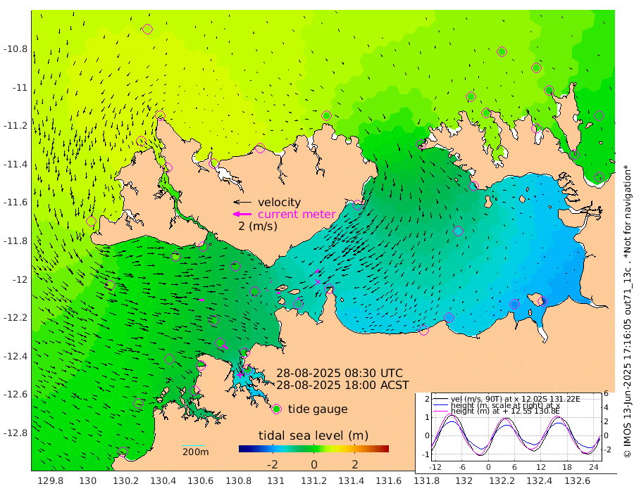 15cm/s -101T +4cm/s rms + 6cm/s 51T. Darwin_C1 52m 20cm/s -88T +4cm/s rms + 7cm/s -161T. Darwin_CW1 22m 7cm/s 62T +4cm/s rms + 8cm/s 61T. Darwin_CW2 34m 49cm/s -144T +3cm/s rms + 9cm/s 98T. Darwin_CW3 22m 34cm/s -86T +5cm/s rms + 7cm/s 88T. Darwin_C3 56m 9cm/s 55T +2cm/s rms + 9cm/s -126T. Darwin_CTbW 22m 60cm/s 96T +1cm/s rms + 1cm/s -47T. DARBGF 30m 68cm/s 126T +4cm/s rms + 3cm/s 80T. NRSDAR 19m 63cm Goodrich Bank 27cm Point Jenny 33cm Native Point 9cm Fish Reef 20cm Tapa Bay 58cm Point Fawcett (Offshore) -3cm Burge Point 37cm Munkunuwa 35cm Beagle A -6cm Parsons Bank 2cm Fenton Patches -19cm Hancox Shoal Area -10cm Nightcliff -26cm Darwin 1cm Charles Point Patches -81cm Glyde Point -157cm Chambers Bay -186cm Point Stuart -106cm Cape Hotham -140cm Christine Reef -212cm West Alligator Head -249cm East Field Island -129cm Two Hills Bay -109cm Camp Point 14cm Medina Inlet South 70cm South Barlow Point 73cm St. Asaph Bay 69cm Cape Van Dieman 65cm Snake Bay 52cm Cache Point 32cm Point Jahleel (Off) -16cm Cape Don 26cm Port Essington 29cm Smith Point - West 24cm NW Peacock Island 32cm North Of Jones Shoal 10cm Peacock Island 1cm Point David 26cm D'urville Point -4cm Copeland Island -3cm One Tree Point