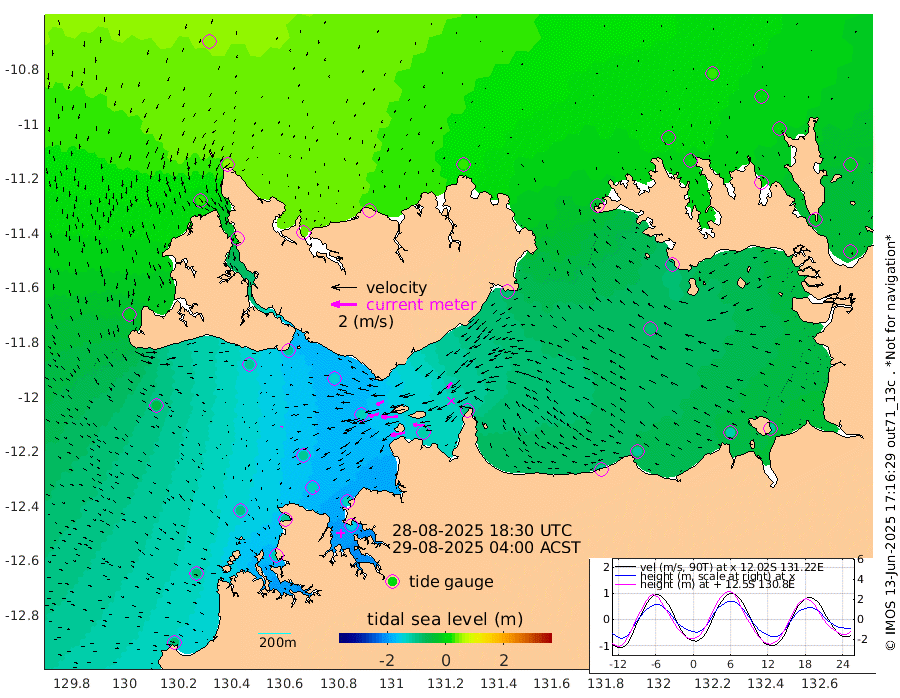 116cm/s -101T +4cm/s rms + 6cm/s 51T. Darwin_C1 52m 91cm/s -91T +4cm/s rms + 7cm/s -161T. Darwin_CW1 22m 76cm/s -106T +4cm/s rms + 8cm/s 61T. Darwin_CW2 34m 58cm/s -135T +3cm/s rms + 9cm/s 98T. Darwin_CW3 22m 131cm/s -91T +5cm/s rms + 7cm/s 88T. Darwin_C3 56m 64cm/s -115T +2cm/s rms + 9cm/s -126T. Darwin_CTbW 22m 6cm/s -155T +1cm/s rms + 1cm/s -47T. DARBGF 30m 11cm/s -171T +4cm/s rms + 3cm/s 80T. NRSDAR 19m 50cm Goodrich Bank -81cm Point Jenny -80cm Native Point -96cm Fish Reef -110cm Tapa Bay -8cm Point Fawcett (Offshore) -115cm Burge Point -107cm Munkunuwa -47cm Beagle A -135cm Parsons Bank -104cm Fenton Patches -135cm Hancox Shoal Area -130cm Nightcliff -154cm Darwin -126cm Charles Point Patches -114cm Glyde Point -107cm Chambers Bay -106cm Point Stuart -99cm Cape Hotham -88cm Christine Reef -117cm West Alligator Head -109cm East Field Island -87cm Two Hills Bay -79cm Camp Point -112cm Medina Inlet South -4cm South Barlow Point 24cm St. Asaph Bay 48cm Cape Van Dieman 39cm Snake Bay 46cm Cache Point 23cm Point Jahleel (Off) -28cm Cape Don 6cm Port Essington 8cm Smith Point - West 9cm NW Peacock Island 26cm North Of Jones Shoal 7cm Peacock Island -22cm Point David 2cm D'urville Point -26cm Copeland Island -18cm One Tree Point