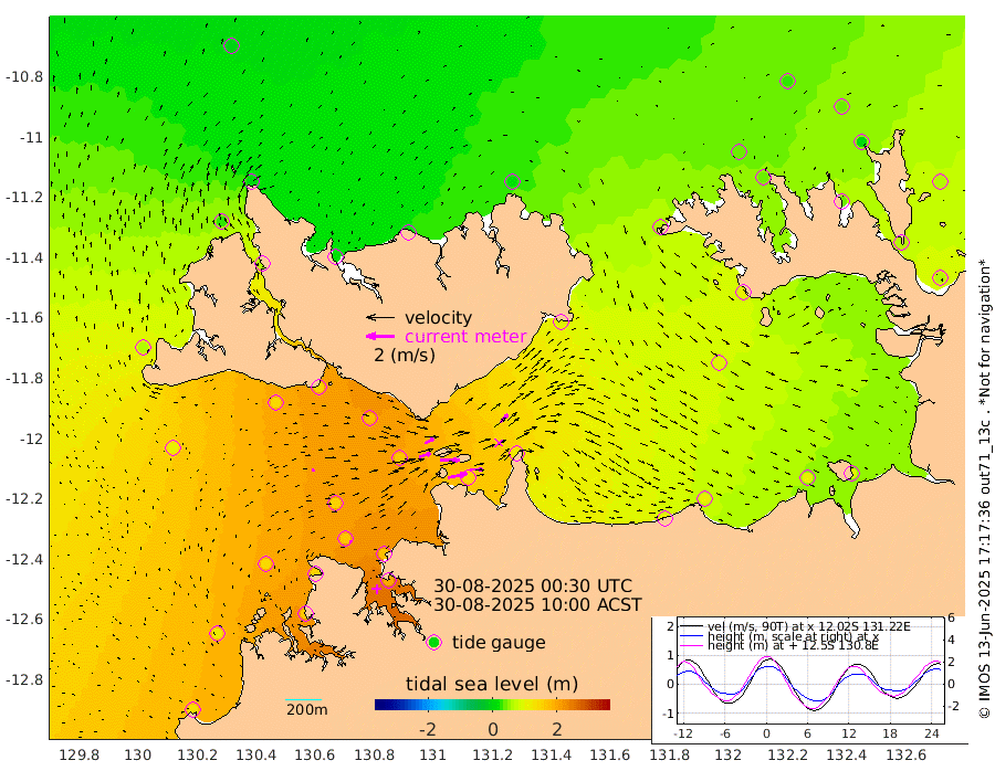 136cm/s 78T +4cm/s rms + 6cm/s 51T. Darwin_C1 52m 92cm/s 90T +4cm/s rms + 7cm/s -161T. Darwin_CW1 22m 83cm/s 74T +4cm/s rms + 8cm/s 61T. Darwin_CW2 34m 81cm/s 44T +3cm/s rms + 9cm/s 98T. Darwin_CW3 22m 137cm/s 89T +5cm/s rms + 7cm/s 88T. Darwin_C3 56m 72cm/s 65T +2cm/s rms + 9cm/s -126T. Darwin_CTbW 22m 16cm/s 68T +1cm/s rms + 1cm/s -47T. DARBGF 30m 12cm/s 73T +4cm/s rms + 3cm/s 80T. NRSDAR 19m -1cm Goodrich Bank 124cm Point Jenny 124cm Native Point 137cm Fish Reef 148cm Tapa Bay 58cm Point Fawcett (Offshore) 163cm Burge Point 140cm Munkunuwa 102cm Beagle A 173cm Parsons Bank 152cm Fenton Patches 168cm Hancox Shoal Area 177cm Nightcliff 193cm Darwin 168cm Charles Point Patches 139cm Glyde Point 112cm Chambers Bay 105cm Point Stuart 120cm Cape Hotham 101cm Christine Reef 111cm West Alligator Head 99cm East Field Island 101cm Two Hills Bay 98cm Camp Point 154cm Medina Inlet South 59cm South Barlow Point 27cm St. Asaph Bay 1cm Cape Van Dieman 17cm Snake Bay 4cm Cache Point 22cm Point Jahleel (Off) 66cm Cape Don 37cm Port Essington 36cm Smith Point - West 36cm NW Peacock Island 24cm North Of Jones Shoal 11cm Peacock Island 61cm Point David 43cm D'urville Point 63cm Copeland Island 61cm One Tree Point