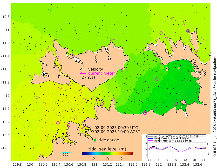 40cm/s 78T +4cm/s rms + 6cm/s 51T. Darwin_C1 52m 7cm/s 72T +4cm/s rms + 7cm/s -161T. Darwin_CW1 22m 23cm/s 76T +4cm/s rms + 8cm/s 61T. Darwin_CW2 34m 14cm/s 55T +3cm/s rms + 9cm/s 98T. Darwin_CW3 22m 35cm/s 89T +5cm/s rms + 7cm/s 88T. Darwin_C3 56m 26cm/s 61T +2cm/s rms + 9cm/s -126T. Darwin_CTbW 22m 9cm/s 80T +1cm/s rms + 1cm/s -47T. DARBGF 30m 6cm/s 94T +4cm/s rms + 3cm/s 80T. NRSDAR 19m 43cm Goodrich Bank 61cm Point Jenny 64cm Native Point 58cm Fish Reef 71cm Tapa Bay 49cm Point Fawcett (Offshore) 73cm Burge Point 68cm Munkunuwa 54cm Beagle A 80cm Parsons Bank 65cm Fenton Patches 73cm Hancox Shoal Area 70cm Nightcliff 82cm Darwin 79cm Charles Point Patches 51cm Glyde Point 20cm Chambers Bay 16cm Point Stuart 40cm Cape Hotham 23cm Christine Reef 11cm West Alligator Head -1cm East Field Island 30cm Two Hills Bay 33cm Camp Point 71cm Medina Inlet South 58cm South Barlow Point 45cm St. Asaph Bay 44cm Cape Van Dieman 53cm Snake Bay 41cm Cache Point 43cm Point Jahleel (Off) 45cm Cape Don 48cm Port Essington 47cm Smith Point - West 51cm NW Peacock Island 42cm North Of Jones Shoal 16cm Peacock Island 62cm Point David 52cm D'urville Point 58cm Copeland Island 57cm One Tree Point