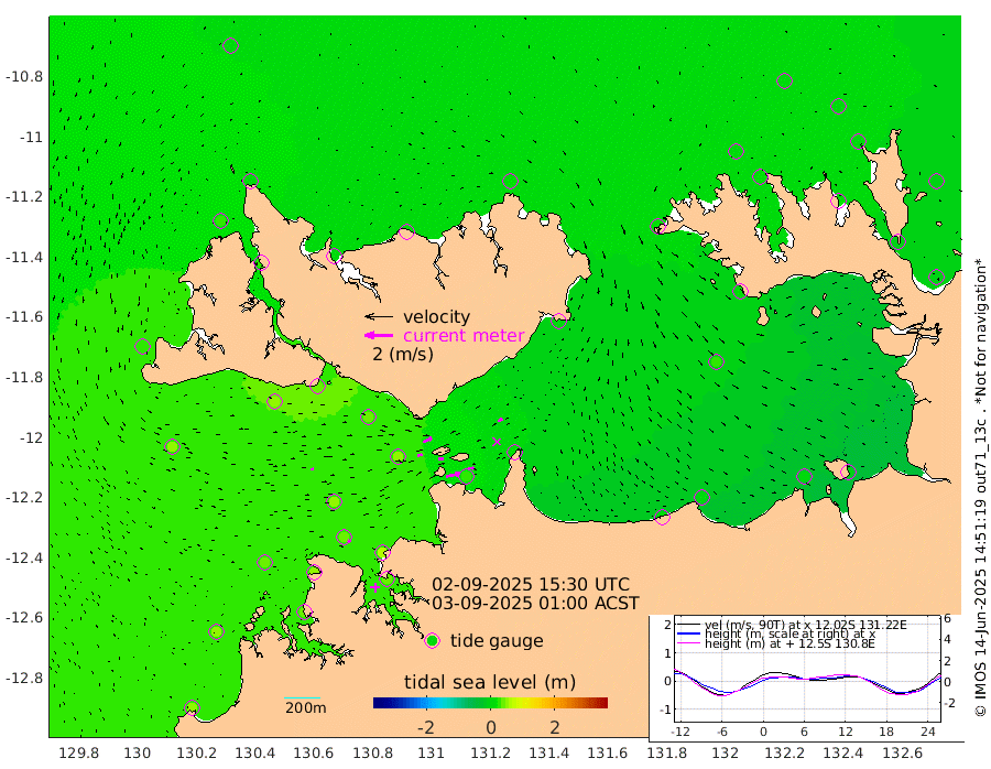 98cm/s 77T +4cm/s rms + 6cm/s 51T. Darwin_C1 52m 43cm/s 93T +4cm/s rms + 7cm/s -161T. Darwin_CW1 22m 33cm/s 72T +4cm/s rms + 8cm/s 61T. Darwin_CW2 34m 35cm/s 56T +3cm/s rms + 9cm/s 98T. Darwin_CW3 22m 34cm/s 88T +5cm/s rms + 7cm/s 88T. Darwin_C3 56m 67cm/s 65T +2cm/s rms + 9cm/s -126T. Darwin_CTbW 22m 21cm/s 89T +1cm/s rms + 1cm/s -47T. DARBGF 30m 19cm/s 114T +4cm/s rms + 3cm/s 80T. NRSDAR 19m 10cm Goodrich Bank 54cm Point Jenny 53cm Native Point 42cm Fish Reef 51cm Tapa Bay 33cm Point Fawcett (Offshore) 42cm Burge Point 45cm Munkunuwa 46cm Beagle A 42cm Parsons Bank 48cm Fenton Patches 46cm Hancox Shoal Area 57cm Nightcliff 37cm Darwin 37cm Charles Point Patches 23cm Glyde Point 16cm Chambers Bay 4cm Point Stuart 13cm Cape Hotham 27cm Christine Reef 6cm West Alligator Head -4cm East Field Island 12cm Two Hills Bay 6cm Camp Point 43cm Medina Inlet South 27cm South Barlow Point 25cm St. Asaph Bay 11cm Cape Van Dieman 8cm Snake Bay 12cm Cache Point 13cm Point Jahleel (Off) 16cm Cape Don 7cm Port Essington 17cm Smith Point - West 10cm NW Peacock Island 9cm North Of Jones Shoal 3cm Peacock Island -3cm Point David 12cm D'urville Point -2cm Copeland Island 0cm One Tree Point