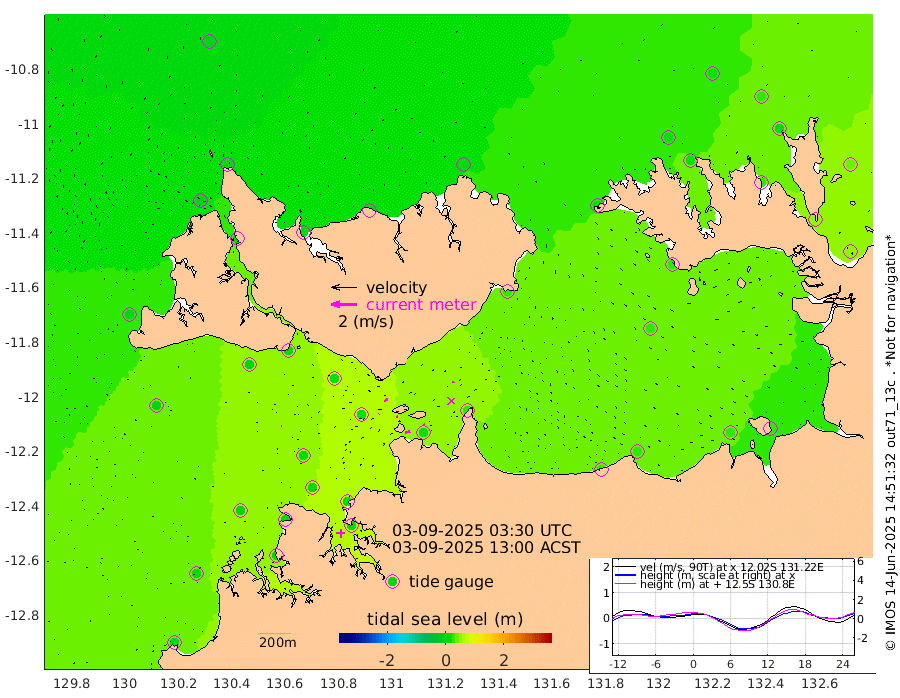 38cm/s 78T +4cm/s rms + 6cm/s 51T. Darwin_C1 52m 9cm/s -73T +4cm/s rms + 7cm/s -161T. Darwin_CW1 22m 3cm/s -117T +4cm/s rms + 8cm/s 61T. Darwin_CW2 34m 14cm/s 49T +3cm/s rms + 9cm/s 98T. Darwin_CW3 22m 11cm/s -97T +5cm/s rms + 7cm/s 88T. Darwin_C3 56m 32cm/s 62T +2cm/s rms + 9cm/s -126T. Darwin_CTbW 22m 4cm/s -97T +1cm/s rms + 1cm/s -47T. DARBGF 30m 5cm/s -50T +4cm/s rms + 3cm/s 80T. NRSDAR 19m -2cm Goodrich Bank 4cm Point Jenny 5cm Native Point -3cm Fish Reef 8cm Tapa Bay -4cm Point Fawcett (Offshore) 1cm Burge Point -4cm Munkunuwa -4cm Beagle A 14cm Parsons Bank 2cm Fenton Patches 19cm Hancox Shoal Area 16cm Nightcliff 11cm Darwin 4cm Charles Point Patches 20cm Glyde Point 28cm Chambers Bay 31cm Point Stuart 25cm Cape Hotham 27cm Christine Reef 32cm West Alligator Head 31cm East Field Island 29cm Two Hills Bay 24cm Camp Point 1cm Medina Inlet South -2cm South Barlow Point -7cm St. Asaph Bay 0cm Cape Van Dieman 7cm Snake Bay 2cm Cache Point 8cm Point Jahleel (Off) 20cm Cape Don 16cm Port Essington 18cm Smith Point - West 24cm NW Peacock Island 14cm North Of Jones Shoal 7cm Peacock Island 48cm Point David 27cm D'urville Point 48cm Copeland Island 40cm One Tree Point