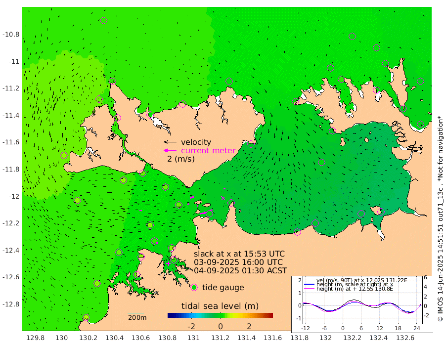 92cm/s 77T +4cm/s rms + 6cm/s 51T. Darwin_C1 52m 35cm/s 92T +4cm/s rms + 7cm/s -161T. Darwin_CW1 22m 27cm/s 73T +4cm/s rms + 8cm/s 61T. Darwin_CW2 34m 25cm/s 65T +3cm/s rms + 9cm/s 98T. Darwin_CW3 22m 17cm/s 87T +5cm/s rms + 7cm/s 88T. Darwin_C3 56m 66cm/s 64T +2cm/s rms + 9cm/s -126T. Darwin_CTbW 22m 32cm/s 92T +1cm/s rms + 1cm/s -47T. DARBGF 30m 32cm/s 120T +4cm/s rms + 3cm/s 80T. NRSDAR 19m 25cm Goodrich Bank 57cm Point Jenny 56cm Native Point 43cm Fish Reef 48cm Tapa Bay 46cm Point Fawcett (Offshore) 40cm Burge Point 48cm Munkunuwa 55cm Beagle A 36cm Parsons Bank 47cm Fenton Patches 34cm Hancox Shoal Area 49cm Nightcliff 25cm Darwin 29cm Charles Point Patches 5cm Glyde Point -17cm Chambers Bay -31cm Point Stuart -8cm Cape Hotham 0cm Christine Reef -34cm West Alligator Head -50cm East Field Island -12cm Two Hills Bay -16cm Camp Point 41cm Medina Inlet South 42cm South Barlow Point 41cm St. Asaph Bay 27cm Cape Van Dieman 22cm Snake Bay 26cm Cache Point 21cm Point Jahleel (Off) 15cm Cape Don 13cm Port Essington 23cm Smith Point - West 16cm NW Peacock Island 17cm North Of Jones Shoal 5cm Peacock Island -4cm Point David 18cm D'urville Point -5cm Copeland Island -1cm One Tree Point