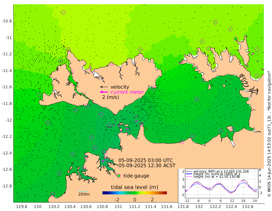 47cm/s -100T +4cm/s rms + 6cm/s 51T. Darwin_C1 52m 61cm/s -92T +4cm/s rms + 7cm/s -161T. Darwin_CW1 22m 34cm/s -108T +4cm/s rms + 8cm/s 61T. Darwin_CW2 34m 36cm/s -137T +3cm/s rms + 9cm/s 98T. Darwin_CW3 22m 55cm/s -92T +5cm/s rms + 7cm/s 88T. Darwin_C3 56m 20cm/s -113T +2cm/s rms + 9cm/s -126T. Darwin_CTbW 22m 4cm/s 169T +1cm/s rms + 1cm/s -47T. DARBGF 30m 4cm/s -175T +4cm/s rms + 3cm/s 80T. NRSDAR 19m 48cm Goodrich Bank -39cm Point Jenny -37cm Native Point -52cm Fish Reef -50cm Tapa Bay 5cm Point Fawcett (Offshore) -65cm Burge Point -54cm Munkunuwa -32cm Beagle A -56cm Parsons Bank -64cm Fenton Patches -59cm Hancox Shoal Area -74cm Nightcliff -72cm Darwin -55cm Charles Point Patches -53cm Glyde Point -55cm Chambers Bay -52cm Point Stuart -46cm Cape Hotham -44cm Christine Reef -61cm West Alligator Head -65cm East Field Island -33cm Two Hills Bay -36cm Camp Point -55cm Medina Inlet South 14cm South Barlow Point 24cm St. Asaph Bay 48cm Cape Van Dieman 48cm Snake Bay 47cm Cache Point 34cm Point Jahleel (Off) 11cm Cape Don 38cm Port Essington 39cm Smith Point - West 44cm NW Peacock Island 41cm North Of Jones Shoal 14cm Peacock Island 43cm Point David 43cm D'urville Point 39cm Copeland Island 38cm One Tree Point