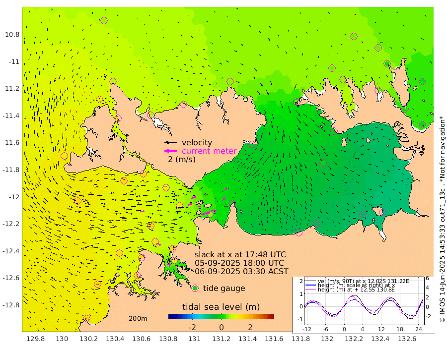 138cm/s 77T +4cm/s rms + 6cm/s 51T. Darwin_C1 52m 86cm/s 88T +4cm/s rms + 7cm/s -161T. Darwin_CW1 22m 55cm/s 74T +4cm/s rms + 8cm/s 61T. Darwin_CW2 34m 45cm/s 58T +3cm/s rms + 9cm/s 98T. Darwin_CW3 22m 53cm/s 88T +5cm/s rms + 7cm/s 88T. Darwin_C3 56m 89cm/s 64T +2cm/s rms + 9cm/s -126T. Darwin_CTbW 22m 63cm/s 91T +1cm/s rms + 1cm/s -47T. DARBGF 30m 64cm/s 120T +4cm/s rms + 3cm/s 80T. NRSDAR 19m 53cm Goodrich Bank 143cm Point Jenny 143cm Native Point 134cm Fish Reef 137cm Tapa Bay 112cm Point Fawcett (Offshore) 138cm Burge Point 139cm Munkunuwa 143cm Beagle A 120cm Parsons Bank 142cm Fenton Patches 108cm Hancox Shoal Area 137cm Nightcliff 113cm Darwin 117cm Charles Point Patches 50cm Glyde Point -15cm Chambers Bay -39cm Point Stuart 19cm Cape Hotham 1cm Christine Reef -48cm West Alligator Head -80cm East Field Island -5cm Two Hills Bay -2cm Camp Point 130cm Medina Inlet South 103cm South Barlow Point 92cm St. Asaph Bay 59cm Cape Van Dieman 57cm Snake Bay 56cm Cache Point 49cm Point Jahleel (Off) 42cm Cape Don 39cm Port Essington 48cm Smith Point - West 37cm NW Peacock Island 39cm North Of Jones Shoal 13cm Peacock Island 13cm Point David 41cm D'urville Point 10cm Copeland Island 17cm One Tree Point