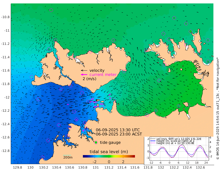 175cm/s -103T +4cm/s rms + 6cm/s 51T. Darwin_C1 52m 125cm/s -89T +4cm/s rms + 7cm/s -161T. Darwin_CW1 22m 100cm/s -107T +4cm/s rms + 8cm/s 61T. Darwin_CW2 34m 80cm/s -131T +3cm/s rms + 9cm/s 98T. Darwin_CW3 22m 129cm/s -90T +5cm/s rms + 7cm/s 88T. Darwin_C3 56m 103cm/s -115T +2cm/s rms + 9cm/s -126T. Darwin_CTbW 22m 56cm/s -93T +1cm/s rms + 1cm/s -47T. DARBGF 30m 47cm/s -65T +4cm/s rms + 3cm/s 80T. NRSDAR 19m -51cm Goodrich Bank -226cm Point Jenny -226cm Native Point -222cm Fish Reef -242cm Tapa Bay -144cm Point Fawcett (Offshore) -249cm Burge Point -220cm Munkunuwa -204cm Beagle A -232cm Parsons Bank -243cm Fenton Patches -228cm Hancox Shoal Area -248cm Nightcliff -251cm Darwin -245cm Charles Point Patches -166cm Glyde Point -100cm Chambers Bay -73cm Point Stuart -123cm Cape Hotham -97cm Christine Reef -69cm West Alligator Head -42cm East Field Island -86cm Two Hills Bay -103cm Camp Point -229cm Medina Inlet South -127cm South Barlow Point -100cm St. Asaph Bay -58cm Cape Van Dieman -61cm Snake Bay -58cm Cache Point -63cm Point Jahleel (Off) -93cm Cape Don -69cm Port Essington -70cm Smith Point - West -64cm NW Peacock Island -51cm North Of Jones Shoal -19cm Peacock Island -72cm Point David -71cm D'urville Point -70cm Copeland Island -69cm One Tree Point