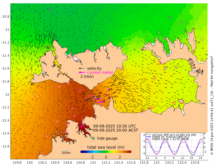 191cm/s 78T +4cm/s rms + 6cm/s 51T. Darwin_C1 52m 143cm/s 93T +4cm/s rms + 7cm/s -161T. Darwin_CW1 22m 121cm/s 72T +4cm/s rms + 8cm/s 61T. Darwin_CW2 34m 114cm/s 44T +3cm/s rms + 9cm/s 98T. Darwin_CW3 22m 191cm/s 89T +5cm/s rms + 7cm/s 88T. Darwin_C3 56m 89cm/s 65T +2cm/s rms + 9cm/s -126T. Darwin_CTbW 22m 19cm/s 61T +1cm/s rms + 1cm/s -47T. DARBGF 30m 11cm/s 49T +4cm/s rms + 3cm/s 80T. NRSDAR 19m -30cm Goodrich Bank 208cm Point Jenny 206cm Native Point 219cm Fish Reef 248cm Tapa Bay 78cm Point Fawcett (Offshore) 265cm Burge Point 225cm Munkunuwa 166cm Beagle A 269cm Parsons Bank 252cm Fenton Patches 275cm Hancox Shoal Area 280cm Nightcliff 299cm Darwin 265cm Charles Point Patches 222cm Glyde Point 192cm Chambers Bay 180cm Point Stuart 194cm Cape Hotham 175cm Christine Reef 193cm West Alligator Head 179cm East Field Island 157cm Two Hills Bay 161cm Camp Point 235cm Medina Inlet South 61cm South Barlow Point 22cm St. Asaph Bay -26cm Cape Van Dieman -18cm Snake Bay -19cm Cache Point 10cm Point Jahleel (Off) 80cm Cape Don 27cm Port Essington 28cm Smith Point - West 26cm NW Peacock Island -3cm North Of Jones Shoal 2cm Peacock Island 66cm Point David 35cm D'urville Point 72cm Copeland Island 56cm One Tree Point