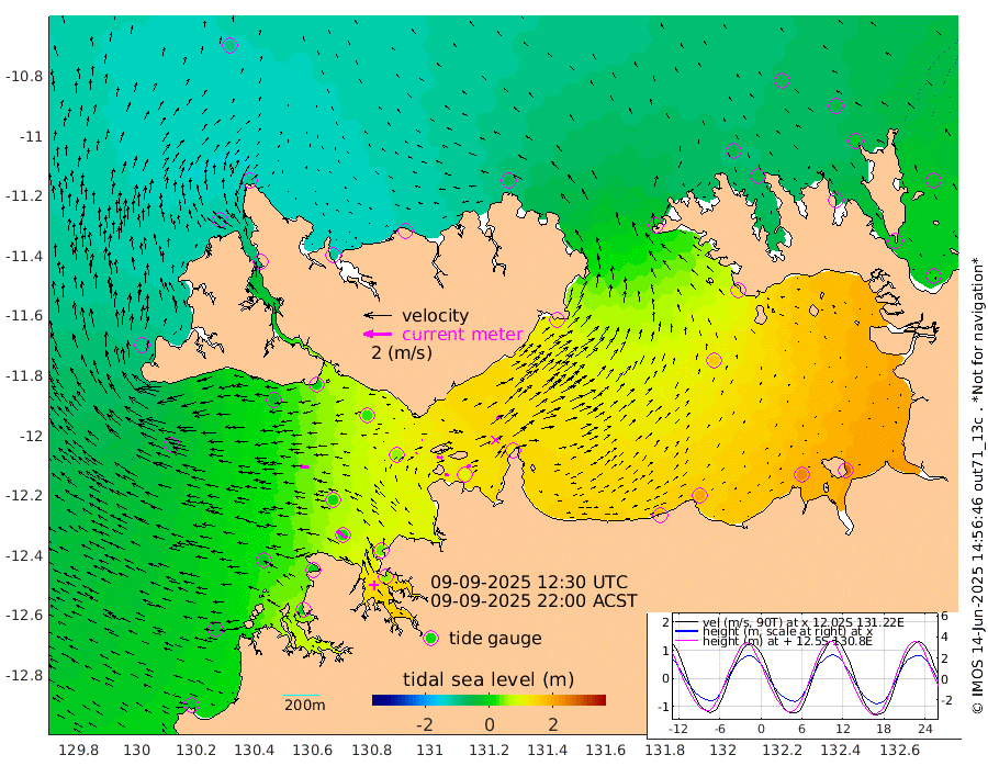 23cm/s 85T +4cm/s rms + 6cm/s 51T. Darwin_C1 52m 27cm/s 87T +4cm/s rms + 7cm/s -161T. Darwin_CW1 22m 10cm/s 60T +4cm/s rms + 8cm/s 61T. Darwin_CW2 34m 41cm/s 39T +3cm/s rms + 9cm/s 98T. Darwin_CW3 22m 41cm/s 93T +5cm/s rms + 7cm/s 88T. Darwin_C3 56m 5cm/s 74T +2cm/s rms + 9cm/s -126T. Darwin_CTbW 22m 71cm/s -84T +1cm/s rms + 1cm/s -47T. DARBGF 30m 89cm/s -54T +4cm/s rms + 3cm/s 80T. NRSDAR 19m -99cm Goodrich Bank -25cm Point Jenny -29cm Native Point -17cm Fish Reef 0cm Tapa Bay -90cm Point Fawcett (Offshore) 11cm Burge Point -28cm Munkunuwa -50cm Beagle A 25cm Parsons Bank 10cm Fenton Patches 55cm Hancox Shoal Area 40cm Nightcliff 53cm Darwin 20cm Charles Point Patches 98cm Glyde Point 182cm Chambers Bay 200cm Point Stuart 119cm Cape Hotham 162cm Christine Reef 229cm West Alligator Head 268cm East Field Island 132cm Two Hills Bay 127cm Camp Point -8cm Medina Inlet South -98cm South Barlow Point -105cm St. Asaph Bay -106cm Cape Van Dieman -102cm Snake Bay -92cm Cache Point -62cm Point Jahleel (Off) -2cm Cape Don -53cm Port Essington -54cm Smith Point - West -47cm NW Peacock Island -64cm North Of Jones Shoal -21cm Peacock Island -6cm Point David -47cm D'urville Point 3cm Copeland Island -12cm One Tree Point