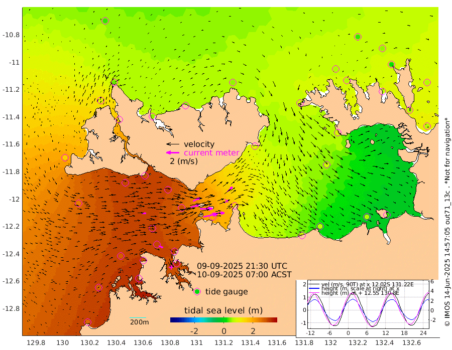 227cm/s 78T +4cm/s rms + 6cm/s 51T. Darwin_C1 52m 175cm/s 90T +4cm/s rms + 7cm/s -161T. Darwin_CW1 22m 136cm/s 74T +4cm/s rms + 8cm/s 61T. Darwin_CW2 34m 113cm/s 47T +3cm/s rms + 9cm/s 98T. Darwin_CW3 22m 198cm/s 89T +5cm/s rms + 7cm/s 88T. Darwin_C3 56m 119cm/s 65T +2cm/s rms + 9cm/s -126T. Darwin_CTbW 22m 69cm/s 86T +1cm/s rms + 1cm/s -47T. DARBGF 30m 68cm/s 112T +4cm/s rms + 3cm/s 80T. NRSDAR 19m 34cm Goodrich Bank 262cm Point Jenny 264cm Native Point 277cm Fish Reef 291cm Tapa Bay 154cm Point Fawcett (Offshore) 314cm Burge Point 294cm Munkunuwa 240cm Beagle A 304cm Parsons Bank 301cm Fenton Patches 281cm Hancox Shoal Area 307cm Nightcliff 321cm Darwin 295cm Charles Point Patches 197cm Glyde Point 90cm Chambers Bay 71cm Point Stuart 146cm Cape Hotham 86cm Christine Reef 67cm West Alligator Head 24cm East Field Island 92cm Two Hills Bay 97cm Camp Point 290cm Medina Inlet South 146cm South Barlow Point 100cm St. Asaph Bay 43cm Cape Van Dieman 55cm Snake Bay 39cm Cache Point 54cm Point Jahleel (Off) 90cm Cape Don 59cm Port Essington 62cm Smith Point - West 53cm NW Peacock Island 34cm North Of Jones Shoal 14cm Peacock Island 66cm Point David 64cm D'urville Point 65cm Copeland Island 62cm One Tree Point