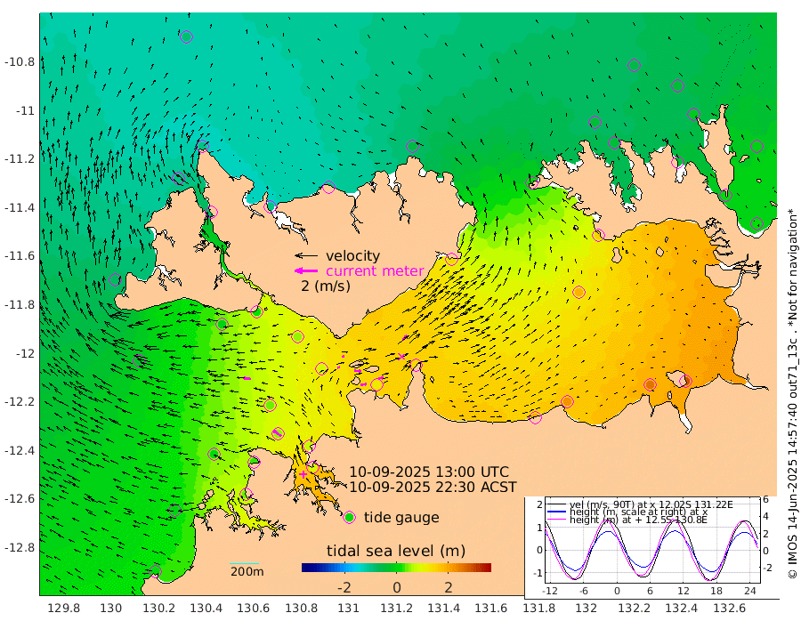 51cm/s 81T +4cm/s rms + 6cm/s 51T. Darwin_C1 52m 48cm/s 89T +4cm/s rms + 7cm/s -161T. Darwin_CW1 22m 22cm/s 66T +4cm/s rms + 8cm/s 61T. Darwin_CW2 34m 54cm/s 42T +3cm/s rms + 9cm/s 98T. Darwin_CW3 22m 60cm/s 92T +5cm/s rms + 7cm/s 88T. Darwin_C3 56m 21cm/s 67T +2cm/s rms + 9cm/s -126T. Darwin_CTbW 22m 68cm/s -82T +1cm/s rms + 1cm/s -47T. DARBGF 30m 88cm/s -53T +4cm/s rms + 3cm/s 80T. NRSDAR 19m -90cm Goodrich Bank 4cm Point Jenny -1cm Native Point 9cm Fish Reef 28cm Tapa Bay -71cm Point Fawcett (Offshore) 41cm Burge Point -4cm Munkunuwa -24cm Beagle A 52cm Parsons Bank 38cm Fenton Patches 82cm Hancox Shoal Area 68cm Nightcliff 80cm Darwin 46cm Charles Point Patches 120cm Glyde Point 202cm Chambers Bay 219cm Point Stuart 138cm Cape Hotham 185cm Christine Reef 249cm West Alligator Head 286cm East Field Island 150cm Two Hills Bay 144cm Camp Point 18cm Medina Inlet South -83cm South Barlow Point -91cm St. Asaph Bay -97cm Cape Van Dieman -93cm Snake Bay -81cm Cache Point -50cm Point Jahleel (Off) 14cm Cape Don -42cm Port Essington -42cm Smith Point - West -36cm NW Peacock Island -55cm North Of Jones Shoal -17cm Peacock Island 3cm Point David -36cm D'urville Point 11cm Copeland Island -3cm One Tree Point