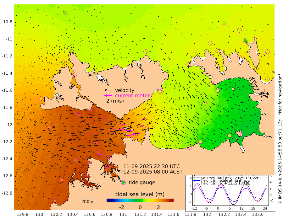 206cm/s 78T +4cm/s rms + 6cm/s 51T. Darwin_C1 52m 152cm/s 89T +4cm/s rms + 7cm/s -161T. Darwin_CW1 22m 122cm/s 74T +4cm/s rms + 8cm/s 61T. Darwin_CW2 34m 98cm/s 47T +3cm/s rms + 9cm/s 98T. Darwin_CW3 22m 178cm/s 89T +5cm/s rms + 7cm/s 88T. Darwin_C3 56m 113cm/s 64T +2cm/s rms + 9cm/s -126T. Darwin_CTbW 22m 62cm/s 86T +1cm/s rms + 1cm/s -47T. DARBGF 30m 58cm/s 112T +4cm/s rms + 3cm/s 80T. NRSDAR 19m 42cm Goodrich Bank 234cm Point Jenny 236cm Native Point 253cm Fish Reef 263cm Tapa Bay 145cm Point Fawcett (Offshore) 282cm Burge Point 266cm Munkunuwa 214cm Beagle A 283cm Parsons Bank 269cm Fenton Patches 259cm Hancox Shoal Area 272cm Nightcliff 298cm Darwin 276cm Charles Point Patches 183cm Glyde Point 80cm Chambers Bay 68cm Point Stuart 139cm Cape Hotham 74cm Christine Reef 62cm West Alligator Head 21cm East Field Island 91cm Two Hills Bay 91cm Camp Point 266cm Medina Inlet South 142cm South Barlow Point 97cm St. Asaph Bay 52cm Cape Van Dieman 66cm Snake Bay 48cm Cache Point 62cm Point Jahleel (Off) 95cm Cape Don 75cm Port Essington 76cm Smith Point - West 71cm NW Peacock Island 48cm North Of Jones Shoal 20cm Peacock Island 89cm Point David 81cm D'urville Point 87cm Copeland Island 83cm One Tree Point