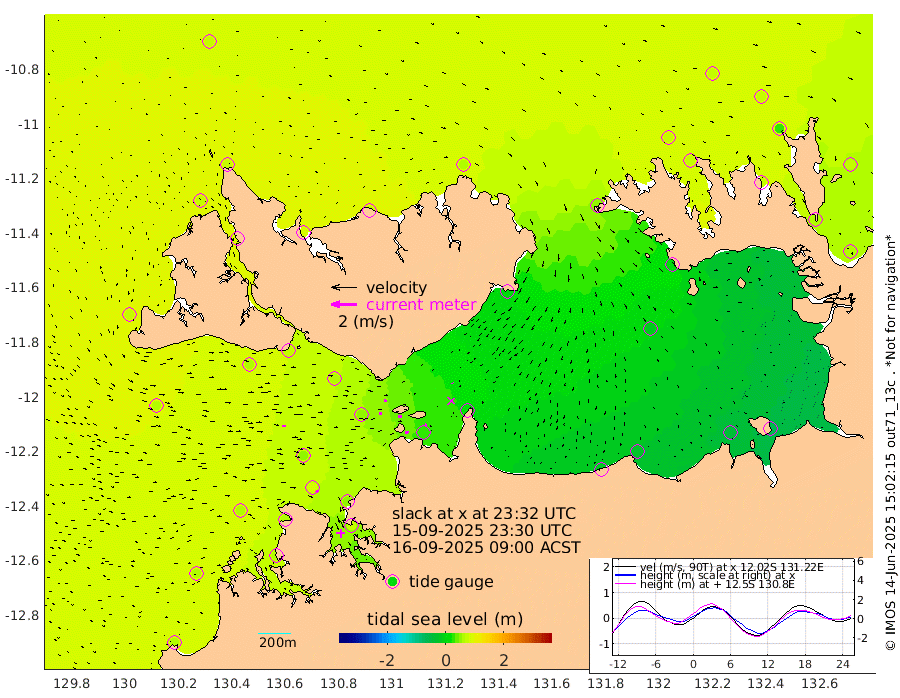 25cm/s 80T +4cm/s rms + 6cm/s 51T. Darwin_C1 52m 11cm/s 73T +4cm/s rms + 7cm/s -161T. Darwin_CW1 22m 19cm/s 79T +4cm/s rms + 8cm/s 61T. Darwin_CW2 34m 4cm/s 176T +3cm/s rms + 9cm/s 98T. Darwin_CW3 22m 29cm/s 88T +5cm/s rms + 7cm/s 88T. Darwin_C3 56m 18cm/s 60T +2cm/s rms + 9cm/s -126T. Darwin_CTbW 22m 24cm/s 90T +1cm/s rms + 1cm/s -47T. DARBGF 30m 20cm/s 120T +4cm/s rms + 3cm/s 80T. NRSDAR 19m 74cm Goodrich Bank 57cm Point Jenny 59cm Native Point 61cm Fish Reef 61cm Tapa Bay 77cm Point Fawcett (Offshore) 58cm Burge Point 61cm Munkunuwa 58cm Beagle A 63cm Parsons Bank 50cm Fenton Patches 53cm Hancox Shoal Area 51cm Nightcliff 70cm Darwin 82cm Charles Point Patches 27cm Glyde Point -19cm Chambers Bay -30cm Point Stuart 11cm Cape Hotham -18cm Christine Reef -43cm West Alligator Head -60cm East Field Island 1cm Two Hills Bay 6cm Camp Point 71cm Medina Inlet South 85cm South Barlow Point 77cm St. Asaph Bay 76cm Cape Van Dieman 84cm Snake Bay 73cm Cache Point 64cm Point Jahleel (Off) 53cm Cape Don 74cm Port Essington 70cm Smith Point - West 72cm NW Peacock Island 76cm North Of Jones Shoal 27cm Peacock Island 67cm Point David 73cm D'urville Point 63cm Copeland Island 71cm One Tree Point