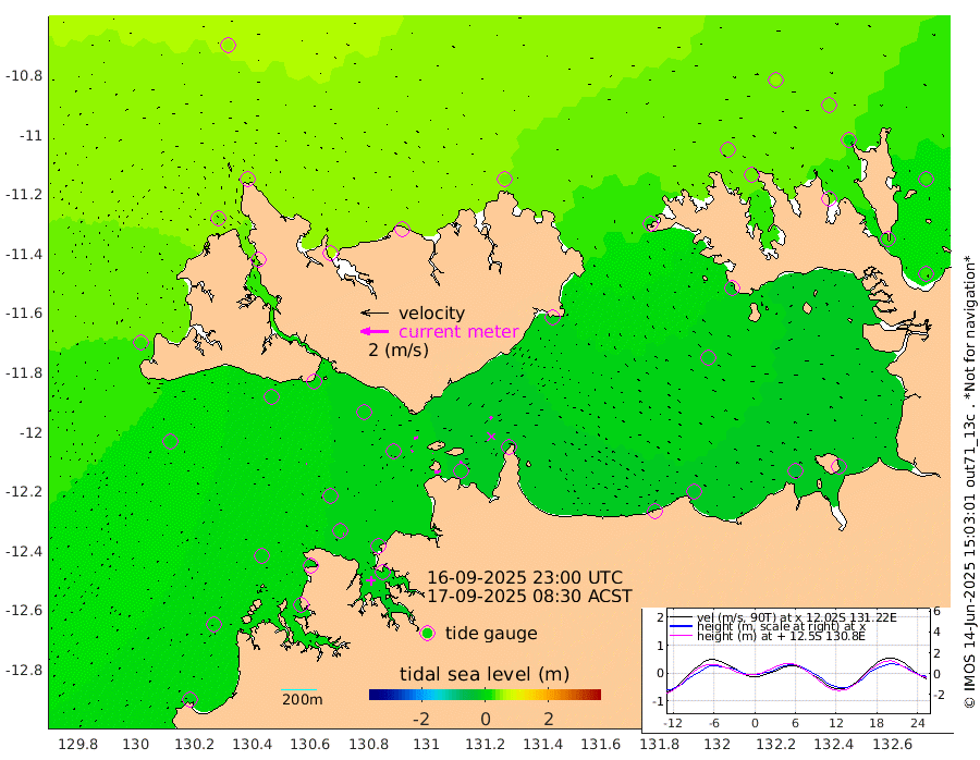 46cm/s -103T +4cm/s rms + 6cm/s 51T. Darwin_C1 52m 21cm/s -85T +4cm/s rms + 7cm/s -161T. Darwin_CW1 22m 11cm/s -116T +4cm/s rms + 8cm/s 61T. Darwin_CW2 34m 23cm/s -132T +3cm/s rms + 9cm/s 98T. Darwin_CW3 22m 2cm/s -92T +5cm/s rms + 7cm/s 88T. Darwin_C3 56m 30cm/s -116T +2cm/s rms + 9cm/s -126T. Darwin_CTbW 22m 3cm/s -82T +1cm/s rms + 1cm/s -47T. DARBGF 30m 5cm/s -71T +4cm/s rms + 3cm/s 80T. NRSDAR 19m 54cm Goodrich Bank -1cm Point Jenny 1cm Native Point -5cm Fish Reef -1cm Tapa Bay 30cm Point Fawcett (Offshore) -3cm Burge Point -3cm Munkunuwa 3cm Beagle A -5cm Parsons Bank -10cm Fenton Patches -6cm Hancox Shoal Area -8cm Nightcliff 3cm Darwin 17cm Charles Point Patches -8cm Glyde Point -20cm Chambers Bay -30cm Point Stuart -14cm Cape Hotham -18cm Christine Reef -38cm West Alligator Head -38cm East Field Island -14cm Two Hills Bay 0cm Camp Point 6cm Medina Inlet South 40cm South Barlow Point 44cm St. Asaph Bay 52cm Cape Van Dieman 57cm Snake Bay 49cm Cache Point 39cm Point Jahleel (Off) 22cm Cape Don 40cm Port Essington 35cm Smith Point - West 37cm NW Peacock Island 49cm North Of Jones Shoal 16cm Peacock Island 28cm Point David 34cm D'urville Point 24cm Copeland Island 33cm One Tree Point