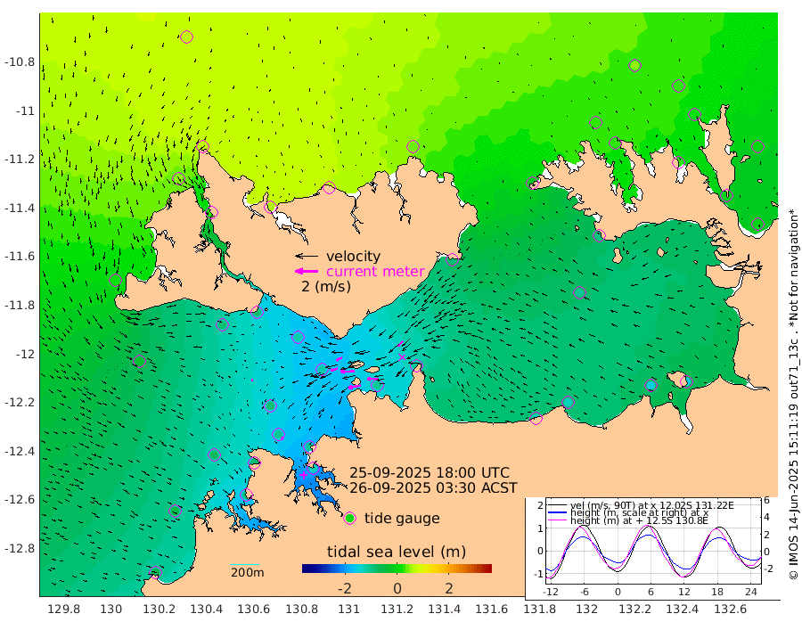 113cm/s -100T +4cm/s rms + 6cm/s 51T. Darwin_C1 52m 98cm/s -91T +4cm/s rms + 7cm/s -161T. Darwin_CW1 22m 64cm/s -106T +4cm/s rms + 8cm/s 61T. Darwin_CW2 34m 64cm/s -135T +3cm/s rms + 9cm/s 98T. Darwin_CW3 22m 123cm/s -91T +5cm/s rms + 7cm/s 88T. Darwin_C3 56m 57cm/s -116T +2cm/s rms + 9cm/s -126T. Darwin_CTbW 22m 15cm/s 117T +1cm/s rms + 1cm/s -47T. DARBGF 30m 23cm/s 149T +4cm/s rms + 3cm/s 80T. NRSDAR 19m 75cm Goodrich Bank -58cm Point Jenny -55cm Native Point -75cm Fish Reef -86cm Tapa Bay 19cm Point Fawcett (Offshore) -94cm Burge Point -83cm Munkunuwa -23cm Beagle A -115cm Parsons Bank -84cm Fenton Patches -119cm Hancox Shoal Area -111cm Nightcliff -135cm Darwin -103cm Charles Point Patches -111cm Glyde Point -124cm Chambers Bay -131cm Point Stuart -105cm Cape Hotham -103cm Christine Reef -147cm West Alligator Head -148cm East Field Island -97cm Two Hills Bay -86cm Camp Point -88cm Medina Inlet South 27cm South Barlow Point 52cm St. Asaph Bay 75cm Cape Van Dieman 67cm Snake Bay 70cm Cache Point 43cm Point Jahleel (Off) -15cm Cape Don 27cm Port Essington 29cm Smith Point - West 30cm NW Peacock Island 47cm North Of Jones Shoal 14cm Peacock Island -3cm Point David 24cm D'urville Point -9cm Copeland Island 1cm One Tree Point