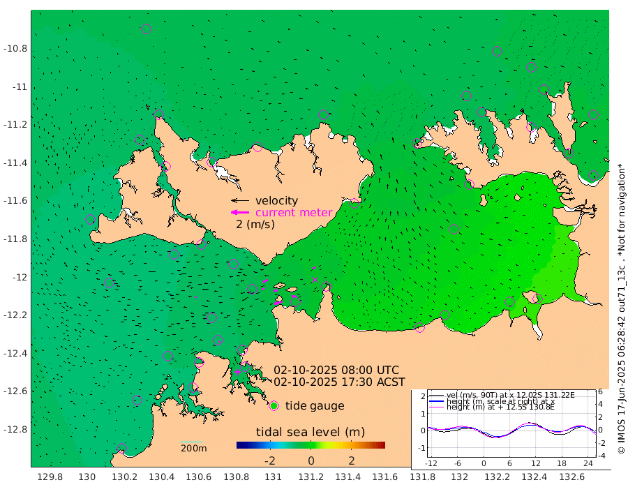 96cm/s -103T +4cm/s rms + 6cm/s 51T. Darwin_C1 52m 46cm/s -89T +4cm/s rms + 7cm/s -161T. Darwin_CW1 22m 28cm/s -104T +4cm/s rms + 8cm/s 61T. Darwin_CW2 34m 36cm/s -125T +3cm/s rms + 9cm/s 98T. Darwin_CW3 22m 39cm/s -90T +5cm/s rms + 7cm/s 88T. Darwin_C3 56m 58cm/s -116T +2cm/s rms + 9cm/s -126T. Darwin_CTbW 22m 21cm/s -91T +1cm/s rms + 1cm/s -47T. DARBGF 30m 19cm/s -68T +4cm/s rms + 3cm/s 80T. NRSDAR 19m -61cm Goodrich Bank -79cm Point Jenny -80cm Native Point -66cm Fish Reef -75cm Tapa Bay -71cm Point Fawcett (Offshore) -72cm Burge Point -69cm Munkunuwa -73cm Beagle A -70cm Parsons Bank -69cm Fenton Patches -64cm Hancox Shoal Area -65cm Nightcliff -66cm Darwin -73cm Charles Point Patches -41cm Glyde Point -11cm Chambers Bay -3cm Point Stuart -24cm Cape Hotham -27cm Christine Reef 1cm West Alligator Head 16cm East Field Island -22cm Two Hills Bay -22cm Camp Point -71cm Medina Inlet South -72cm South Barlow Point -66cm St. Asaph Bay -62cm Cape Van Dieman -62cm Snake Bay -61cm Cache Point -55cm Point Jahleel (Off) -51cm Cape Don -55cm Port Essington -58cm Smith Point - West -56cm NW Peacock Island -51cm North Of Jones Shoal -17cm Peacock Island -44cm Point David -57cm D'urville Point -40cm Copeland Island -45cm One Tree Point