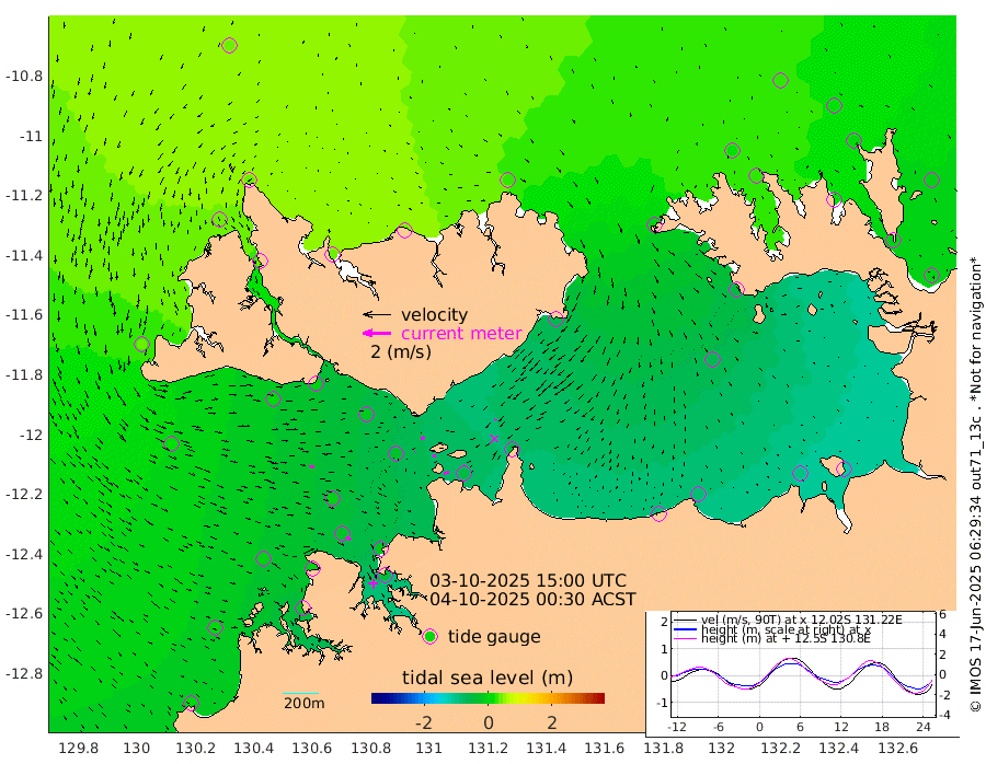 34cm/s 77T +4cm/s rms + 6cm/s 51T. Darwin_C1 52m 4cm/s -147T +4cm/s rms + 7cm/s -161T. Darwin_CW1 22m 2cm/s 54T +4cm/s rms + 8cm/s 61T. Darwin_CW2 34m 12cm/s -170T +3cm/s rms + 9cm/s 98T. Darwin_CW3 22m 17cm/s -90T +5cm/s rms + 7cm/s 88T. Darwin_C3 56m 30cm/s 64T +2cm/s rms + 9cm/s -126T. Darwin_CTbW 22m 33cm/s 97T +1cm/s rms + 1cm/s -47T. DARBGF 30m 35cm/s 125T +4cm/s rms + 3cm/s 80T. NRSDAR 19m 41cm Goodrich Bank 9cm Point Jenny 10cm Native Point -1cm Fish Reef -9cm Tapa Bay 35cm Point Fawcett (Offshore) -12cm Burge Point 8cm Munkunuwa 22cm Beagle A -15cm Parsons Bank -8cm Fenton Patches -29cm Hancox Shoal Area -18cm Nightcliff -39cm Darwin -29cm Charles Point Patches -51cm Glyde Point -83cm Chambers Bay -88cm Point Stuart -56cm Cape Hotham -60cm Christine Reef -97cm West Alligator Head -116cm East Field Island -55cm Two Hills Bay -65cm Camp Point -6cm Medina Inlet South 41cm South Barlow Point 44cm St. Asaph Bay 44cm Cape Van Dieman 41cm Snake Bay 40cm Cache Point 27cm Point Jahleel (Off) 0cm Cape Don 17cm Port Essington 26cm Smith Point - West 20cm NW Peacock Island 26cm North Of Jones Shoal 8cm Peacock Island -6cm Point David 21cm D'urville Point -9cm Copeland Island -2cm One Tree Point