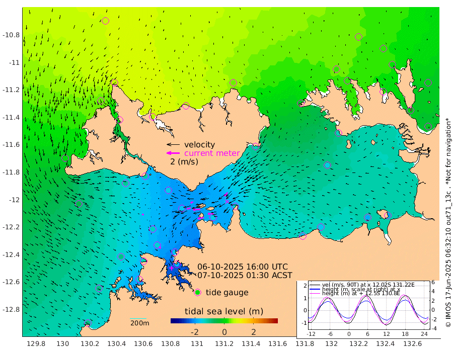98cm/s -101T +4cm/s rms + 6cm/s 51T. Darwin_C1 52m 91cm/s -92T +4cm/s rms + 7cm/s -161T. Darwin_CW1 22m 59cm/s -106T +4cm/s rms + 8cm/s 61T. Darwin_CW2 34m 74cm/s -137T +3cm/s rms + 9cm/s 98T. Darwin_CW3 22m 116cm/s -90T +5cm/s rms + 7cm/s 88T. Darwin_C3 56m 43cm/s -116T +2cm/s rms + 9cm/s -126T. Darwin_CTbW 22m 26cm/s 110T +1cm/s rms + 1cm/s -47T. DARBGF 30m 34cm/s 138T +4cm/s rms + 3cm/s 80T. NRSDAR 19m 70cm Goodrich Bank -94cm Point Jenny -91cm Native Point -101cm Fish Reef -125cm Tapa Bay 7cm Point Fawcett (Offshore) -142cm Burge Point -106cm Munkunuwa -55cm Beagle A -146cm Parsons Bank -128cm Fenton Patches -160cm Hancox Shoal Area -158cm Nightcliff -177cm Darwin -145cm Charles Point Patches -151cm Glyde Point -171cm Chambers Bay -168cm Point Stuart -139cm Cape Hotham -152cm Christine Reef -187cm West Alligator Head -196cm East Field Island -124cm Two Hills Bay -133cm Camp Point -118cm Medina Inlet South 19cm South Barlow Point 43cm St. Asaph Bay 71cm Cape Van Dieman 66cm Snake Bay 64cm Cache Point 37cm Point Jahleel (Off) -29cm Cape Don 23cm Port Essington 28cm Smith Point - West 27cm NW Peacock Island 44cm North Of Jones Shoal 13cm Peacock Island -10cm Point David 23cm D'urville Point -17cm Copeland Island -6cm One Tree Point