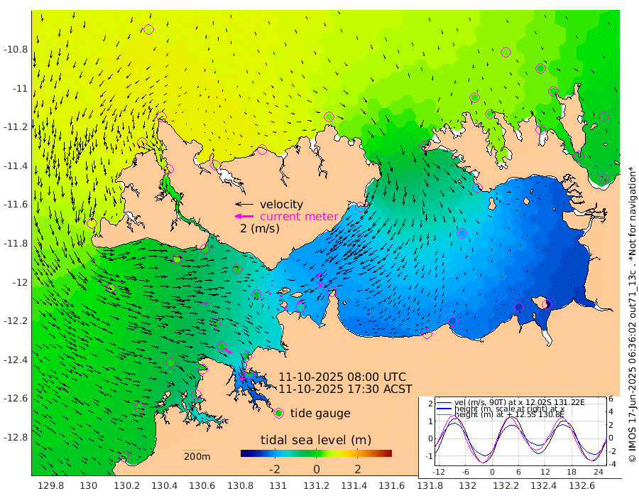 41cm/s -101T +4cm/s rms + 6cm/s 51T. Darwin_C1 52m 44cm/s -94T +4cm/s rms + 7cm/s -161T. Darwin_CW1 22m 16cm/s 69T +4cm/s rms + 8cm/s 61T. Darwin_CW2 34m 74cm/s -143T +3cm/s rms + 9cm/s 98T. Darwin_CW3 22m 25cm/s -83T +5cm/s rms + 7cm/s 88T. Darwin_C3 56m 8cm/s -113T +2cm/s rms + 9cm/s -126T. Darwin_CTbW 22m 83cm/s 95T +1cm/s rms + 1cm/s -47T. DARBGF 30m 92cm/s 126T +4cm/s rms + 3cm/s 80T. NRSDAR 19m 75cm Goodrich Bank 18cm Point Jenny 22cm Native Point 14cm Fish Reef 3cm Tapa Bay 79cm Point Fawcett (Offshore) -18cm Burge Point 42cm Munkunuwa 35cm Beagle A -22cm Parsons Bank -17cm Fenton Patches -50cm Hancox Shoal Area -33cm Nightcliff -49cm Darwin -17cm Charles Point Patches -117cm Glyde Point -209cm Chambers Bay -238cm Point Stuart -141cm Cape Hotham -195cm Christine Reef -268cm West Alligator Head -316cm East Field Island -164cm Two Hills Bay -158cm Camp Point 11cm Medina Inlet South 87cm South Barlow Point 93cm St. Asaph Bay 82cm Cape Van Dieman 77cm Snake Bay 64cm Cache Point 38cm Point Jahleel (Off) -27cm Cape Don 26cm Port Essington 30cm Smith Point - West 19cm NW Peacock Island 41cm North Of Jones Shoal 12cm Peacock Island -25cm Point David 20cm D'urville Point -32cm Copeland Island -19cm One Tree Point