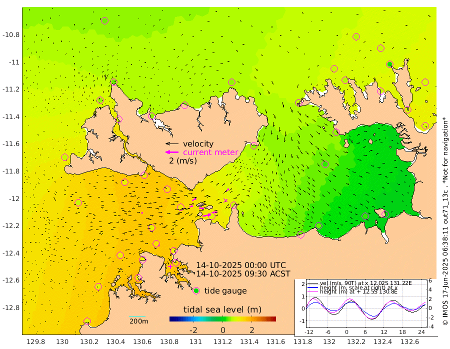 128cm/s 78T +4cm/s rms + 6cm/s 51T. Darwin_C1 52m 74cm/s 88T +4cm/s rms + 7cm/s -161T. Darwin_CW1 22m 49cm/s 76T +4cm/s rms + 8cm/s 61T. Darwin_CW2 34m 57cm/s 48T +3cm/s rms + 9cm/s 98T. Darwin_CW3 22m 77cm/s 89T +5cm/s rms + 7cm/s 88T. Darwin_C3 56m 71cm/s 64T +2cm/s rms + 9cm/s -126T. Darwin_CTbW 22m 26cm/s 87T +1cm/s rms + 1cm/s -47T. DARBGF 30m 22cm/s 107T +4cm/s rms + 3cm/s 80T. NRSDAR 19m 35cm Goodrich Bank 95cm Point Jenny 94cm Native Point 107cm Fish Reef 110cm Tapa Bay 73cm Point Fawcett (Offshore) 111cm Burge Point 107cm Munkunuwa 79cm Beagle A 129cm Parsons Bank 99cm Fenton Patches 117cm Hancox Shoal Area 110cm Nightcliff 136cm Darwin 130cm Charles Point Patches 85cm Glyde Point 37cm Chambers Bay 37cm Point Stuart 68cm Cape Hotham 32cm Christine Reef 30cm West Alligator Head 8cm East Field Island 54cm Two Hills Bay 45cm Camp Point 117cm Medina Inlet South 74cm South Barlow Point 52cm St. Asaph Bay 40cm Cape Van Dieman 51cm Snake Bay 41cm Cache Point 46cm Point Jahleel (Off) 68cm Cape Don 68cm Port Essington 66cm Smith Point - West 68cm NW Peacock Island 56cm North Of Jones Shoal 22cm Peacock Island 89cm Point David 75cm D'urville Point 89cm Copeland Island 87cm One Tree Point