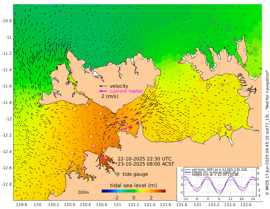 142cm/s 79T +4cm/s rms + 6cm/s 51T. Darwin_C1 52m 122cm/s 92T +4cm/s rms + 7cm/s -161T. Darwin_CW1 22m 82cm/s 71T +4cm/s rms + 8cm/s 61T. Darwin_CW2 34m 92cm/s 44T +3cm/s rms + 9cm/s 98T. Darwin_CW3 22m 145cm/s 90T +5cm/s rms + 7cm/s 88T. Darwin_C3 56m 63cm/s 65T +2cm/s rms + 9cm/s -126T. Darwin_CTbW 22m 18cm/s -62T +1cm/s rms + 1cm/s -47T. DARBGF 30m 31cm/s -43T +4cm/s rms + 3cm/s 80T. NRSDAR 19m -65cm Goodrich Bank 89cm Point Jenny 86cm Native Point 115cm Fish Reef 118cm Tapa Bay 0cm Point Fawcett (Offshore) 144cm Burge Point 112cm Munkunuwa 59cm Beagle A 156cm Parsons Bank 130cm Fenton Patches 154cm Hancox Shoal Area 151cm Nightcliff 185cm Darwin 148cm Charles Point Patches 154cm Glyde Point 150cm Chambers Bay 165cm Point Stuart 142cm Cape Hotham 130cm Christine Reef 180cm West Alligator Head 184cm East Field Island 128cm Two Hills Bay 122cm Camp Point 128cm Medina Inlet South -5cm South Barlow Point -39cm St. Asaph Bay -64cm Cape Van Dieman -51cm Snake Bay -57cm Cache Point -28cm Point Jahleel (Off) 41cm Cape Don -6cm Port Essington -12cm Smith Point - West -10cm NW Peacock Island -31cm North Of Jones Shoal -7cm Peacock Island 30cm Point David -3cm D'urville Point 36cm Copeland Island 28cm One Tree Point